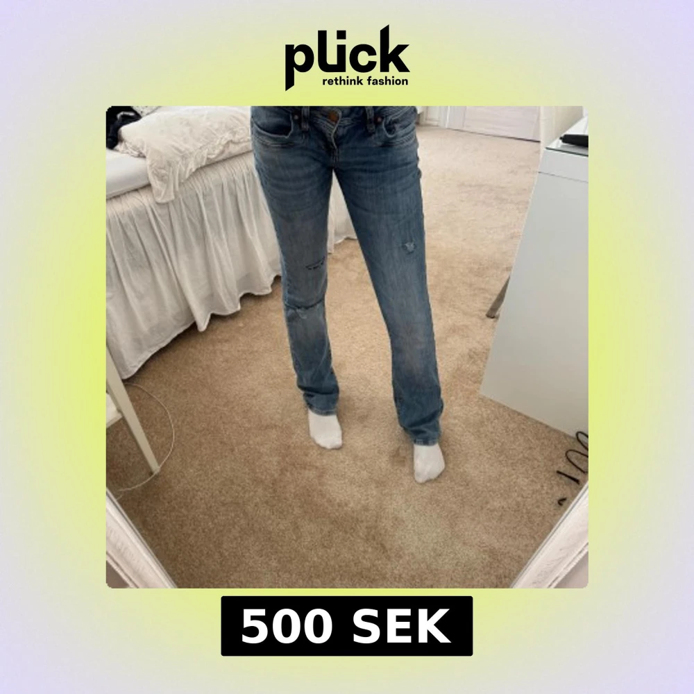 Säljer ett par klassiska LTB jeans i modellen ”VALERIE”, jeansen är köpta på Vinted och har egen gjorda hål, säljer dom för att jag inte tycker att de passar mig! 🌸