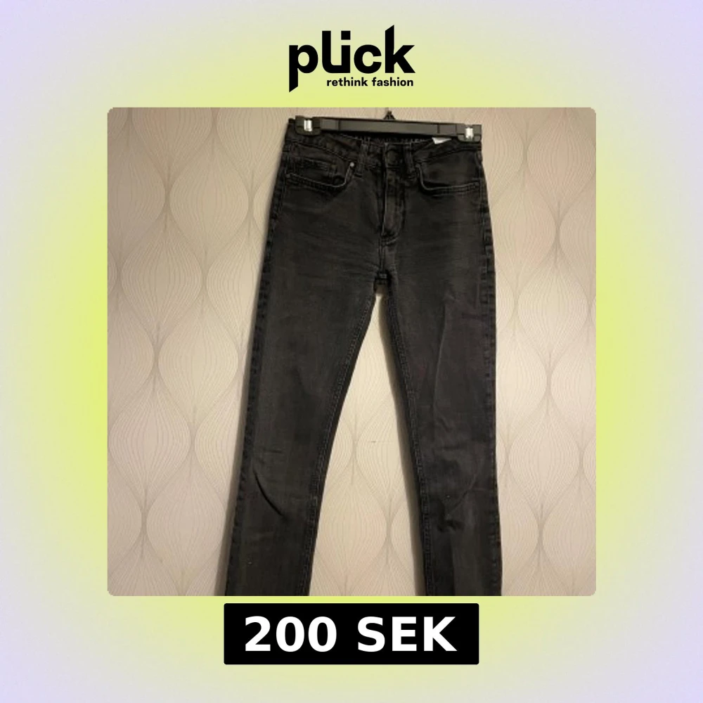 Säljer ett par svarta jeans från Never Denim med klassisk femficksdesign och raka ben. Jeansen har hög midja och stängs med knapp och dragkedja. Perfekta till många olika outfits.
