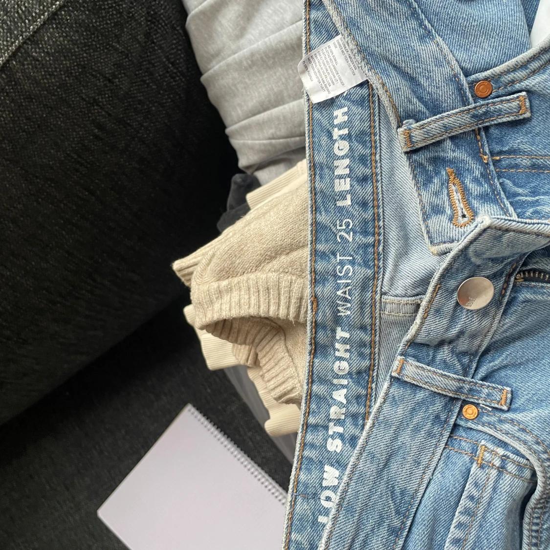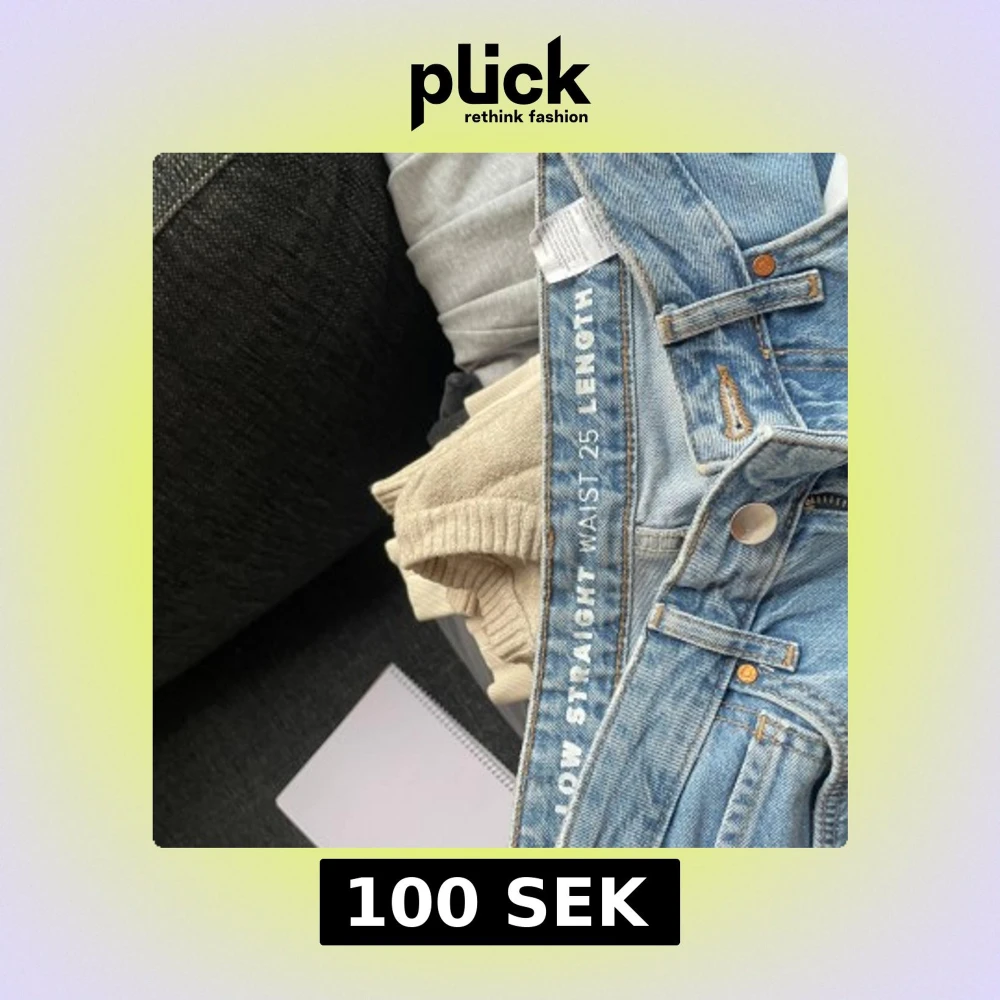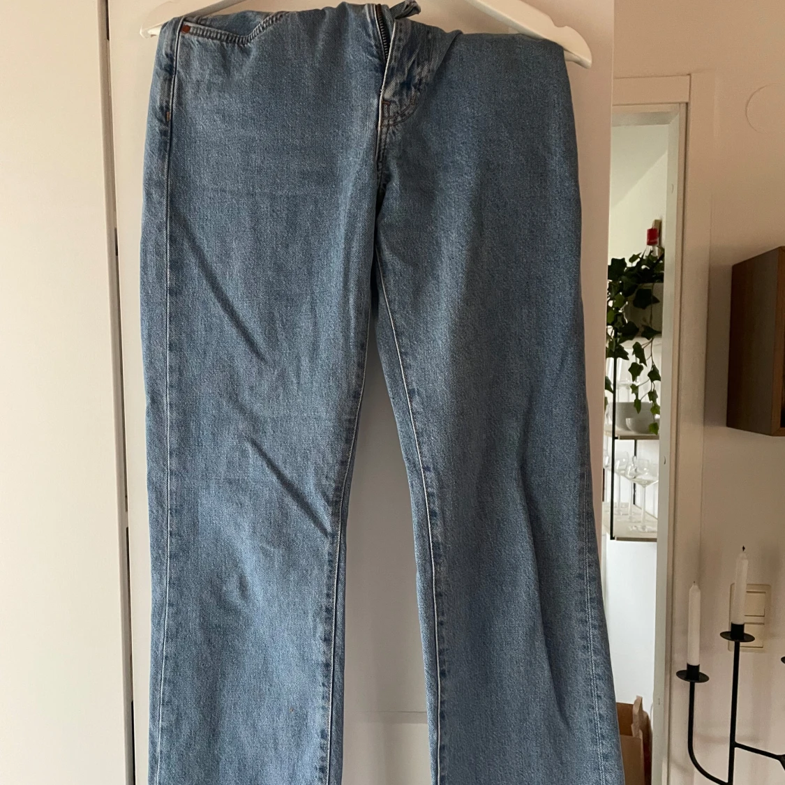 Säljer ett par klassiska blå jeans med rak passform. De har en knappgylf och är i en ljusblå tvätt. Perfekta för en avslappnad stil. W25 L32