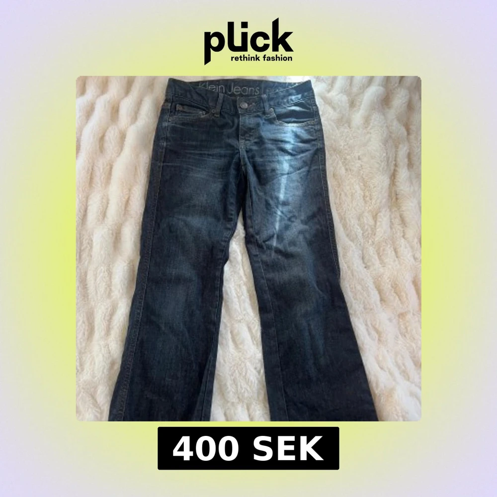 Säljer ett par mörkblå jeansbyxor från Calvin Klein Jeans med klassisk femficksdesign och snygga detaljer på bakfickorna. Byxorna har raka ben och normal passform. Perfekta för en avslappnad stil.