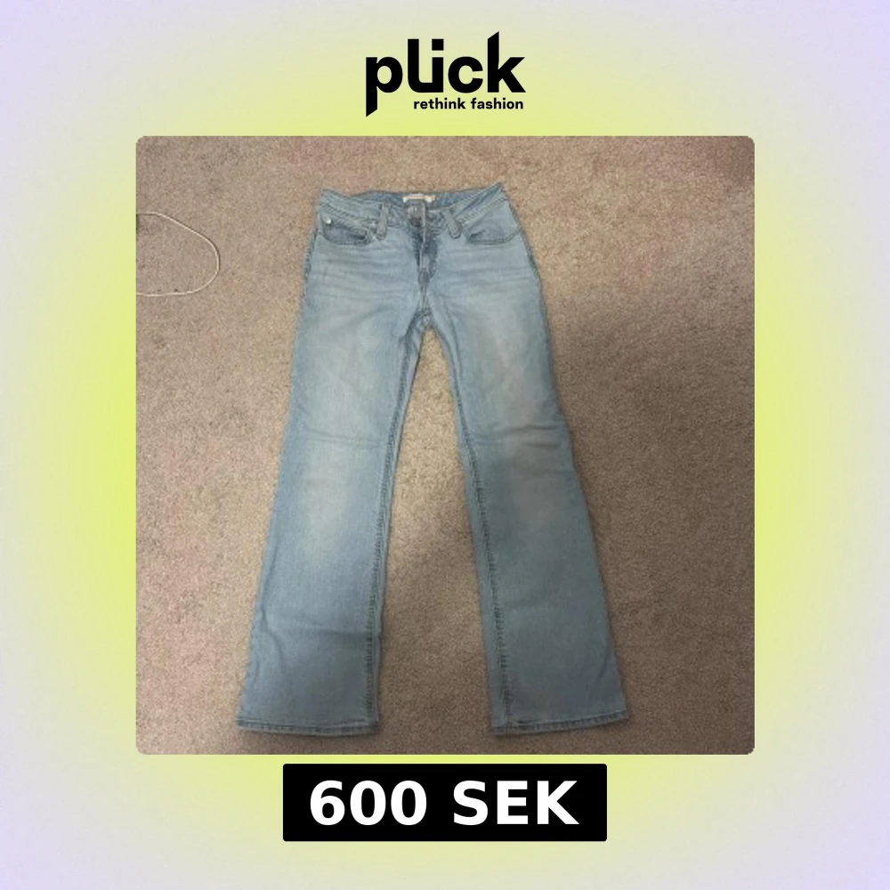 Ljusblåa lågmidjade jeans passar för folk som är ca 160 cm långa och kortare