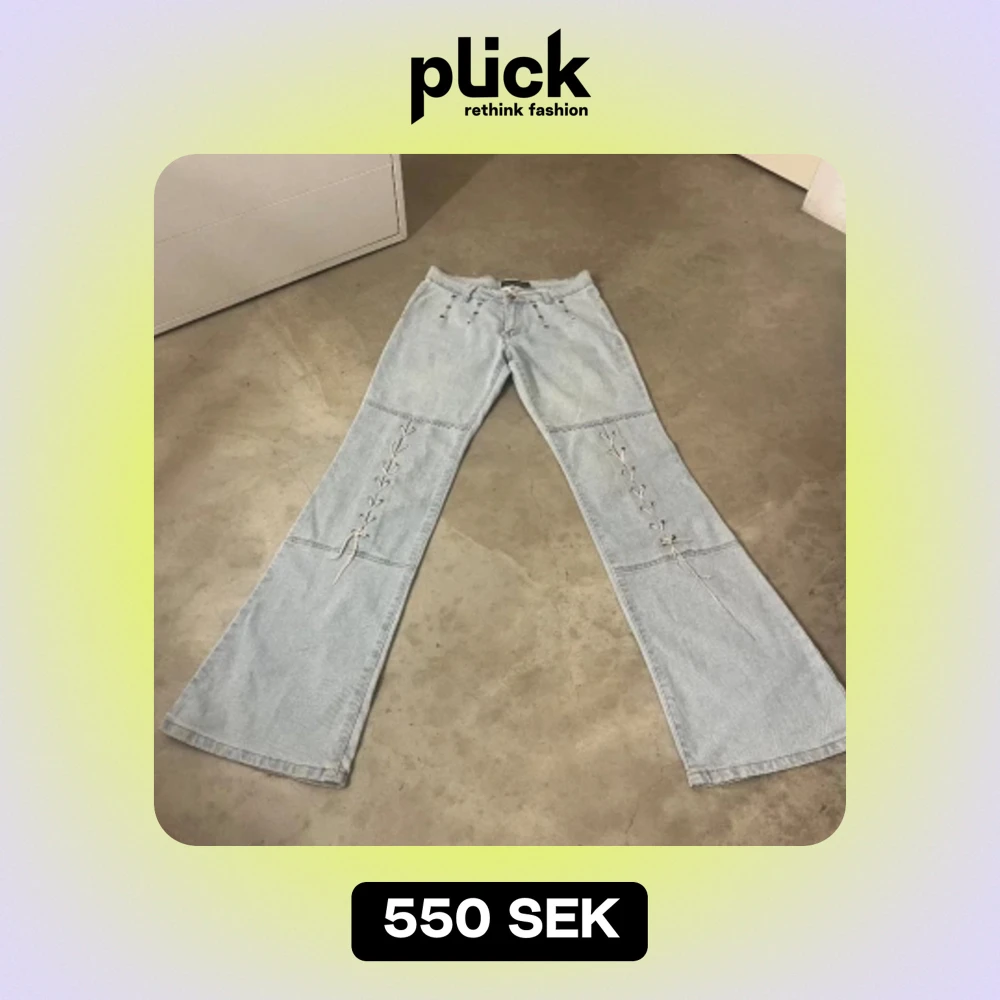 Super fina ljusblåa byxor med coola detaljer på knäna. Står storlek 25 men skulle säga att dem passar på S-M