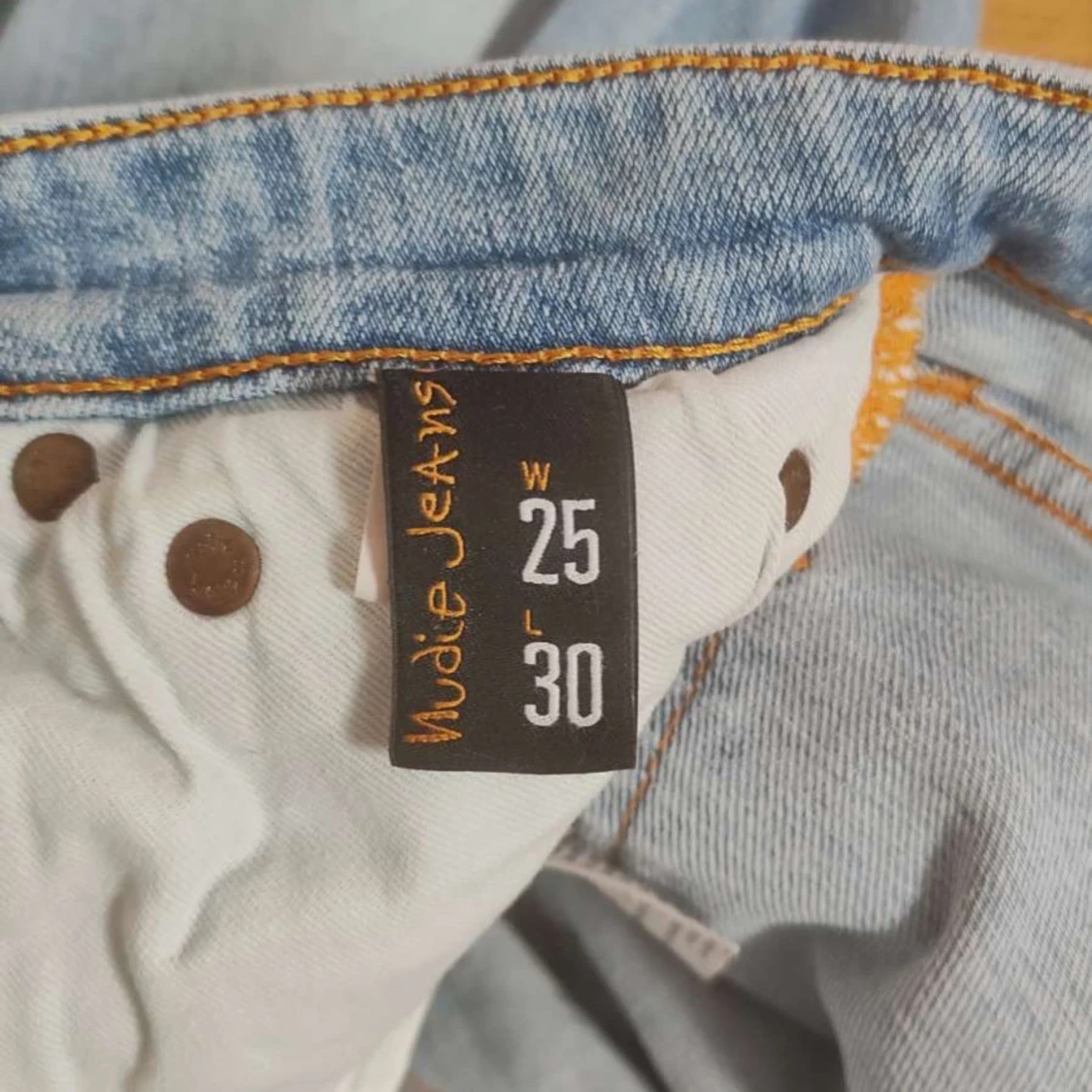 Ljusblåa Nudie jeans för kvinnor i väldigt bra skick till salu, Storlek Waist 25 / Lenght 30, Modellen är Skinny Lin, Tillverkad i Italien. PRIS KAN DISKUTERAS!