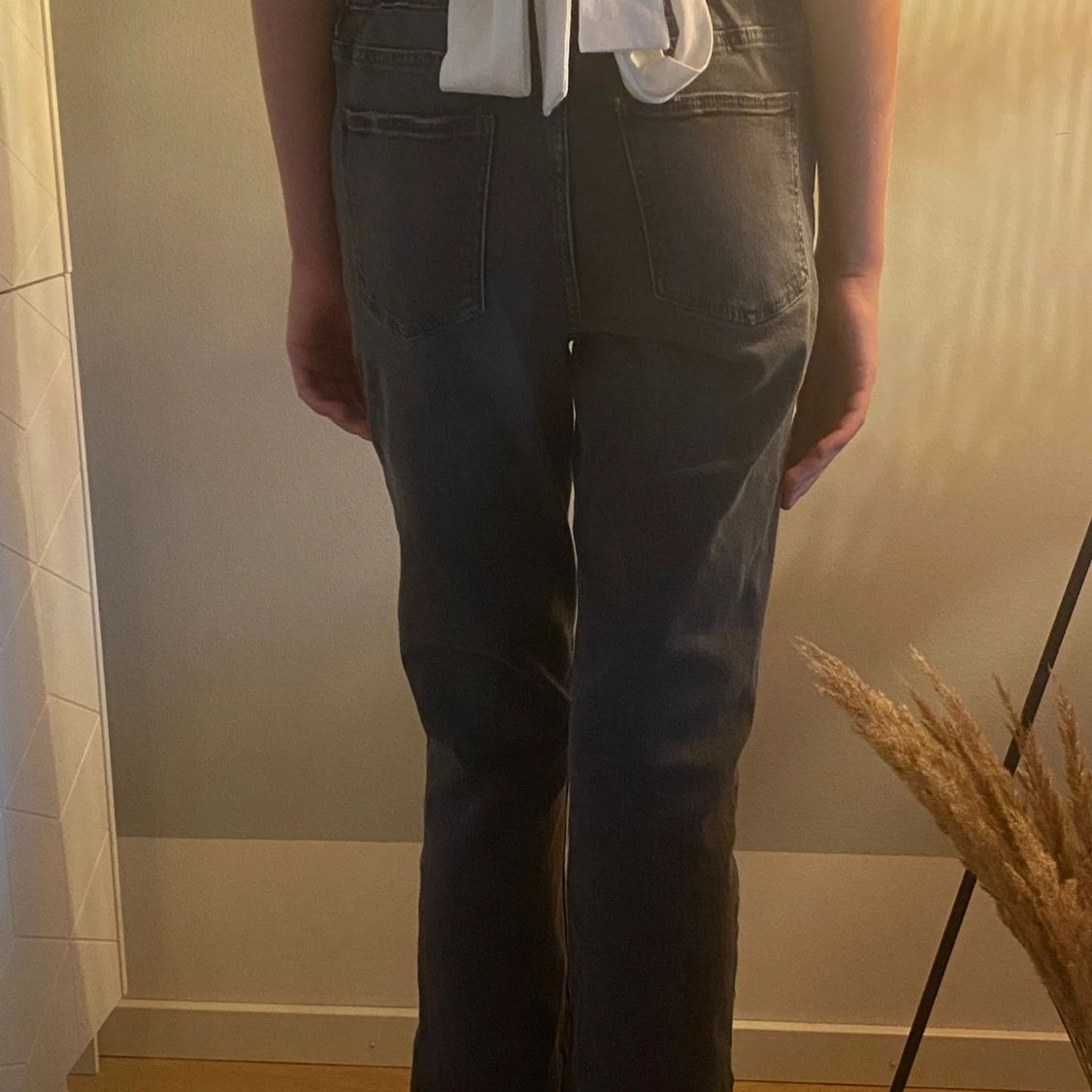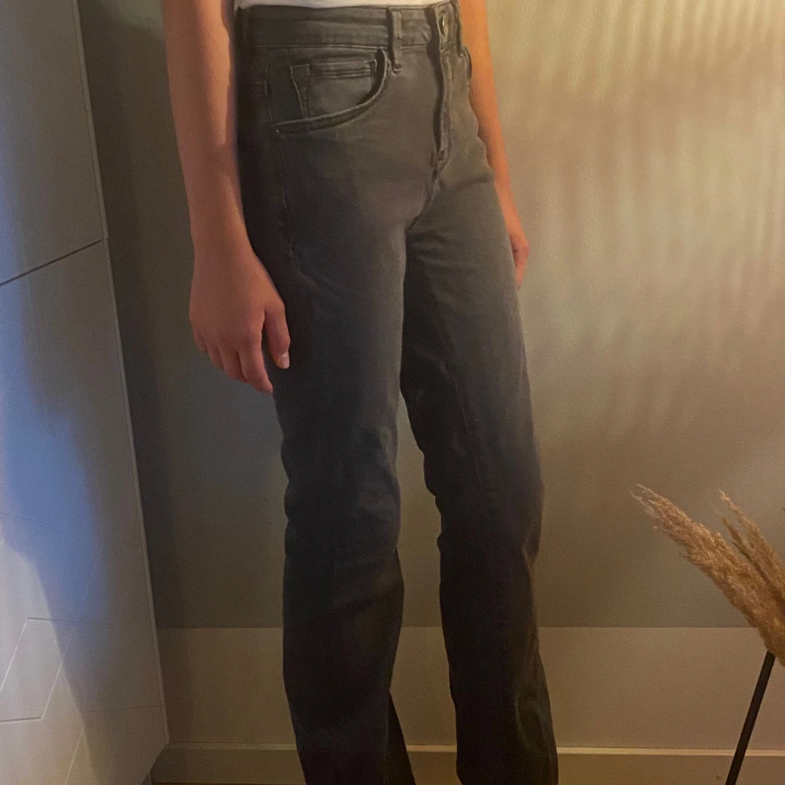 Grå bootcut jeans med hög midja