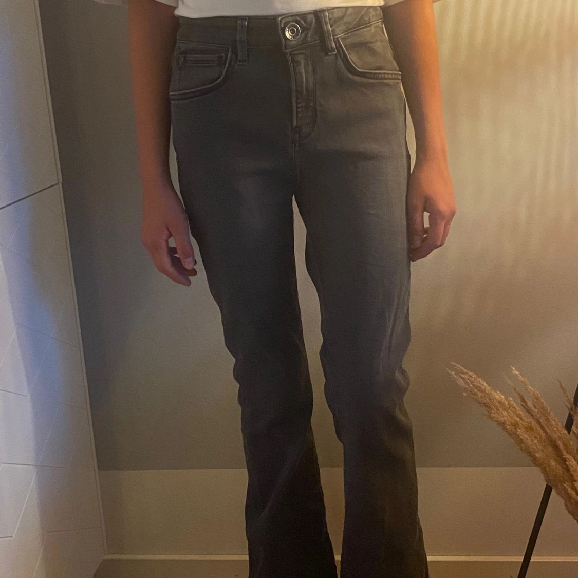 Snygga grå jeans med bootcut passform och hög midja. Klassisk femficksmodell med knapp och dragkedja framtill. Jeansen har raka ben som blir lite vidare nedtill och är tillverkade i mjukt denimtyg. Perfekta för dig som gillar en chill och stilren look.