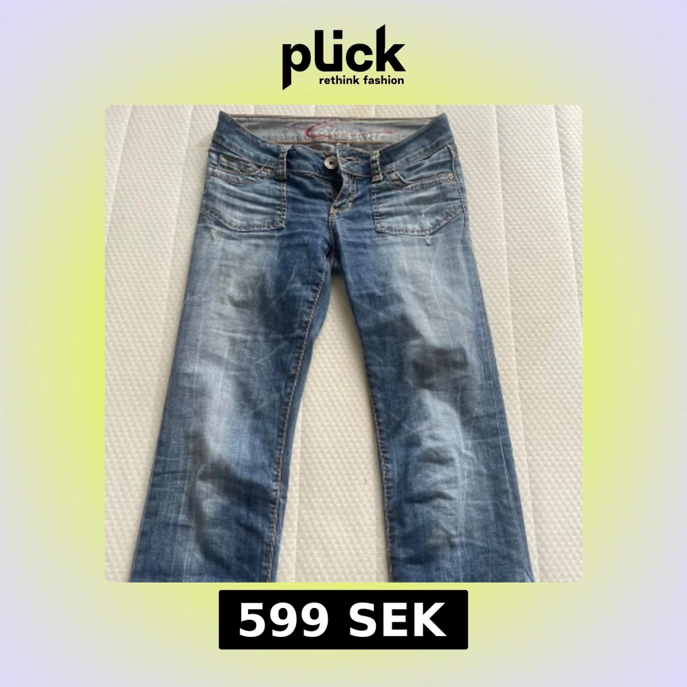 Snygga blå jeans från Cars med bootcut-modell och slitna detaljer. Jeansen har låg midja, klassiska fem fickor och kontrastsömmar. Materialet är jeans med en tvättad look och ljusare partier längs benen för en cool vintagekänsla.