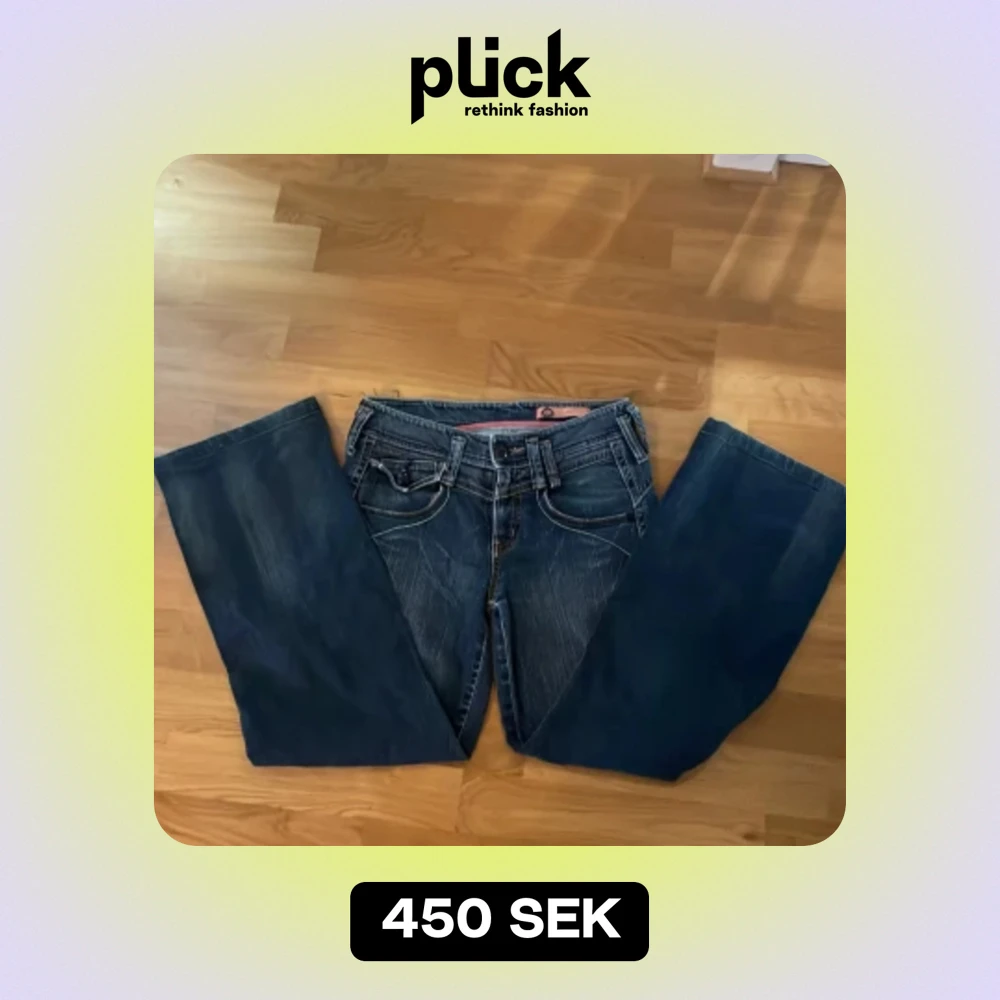 Supersnygga bootcut midrise jeans med dekorerade fickor och ett spänne där bak Sitter supebra, lite kortare modell, runt storlek 26, priset kan diskuteras Priset kan diskuteras