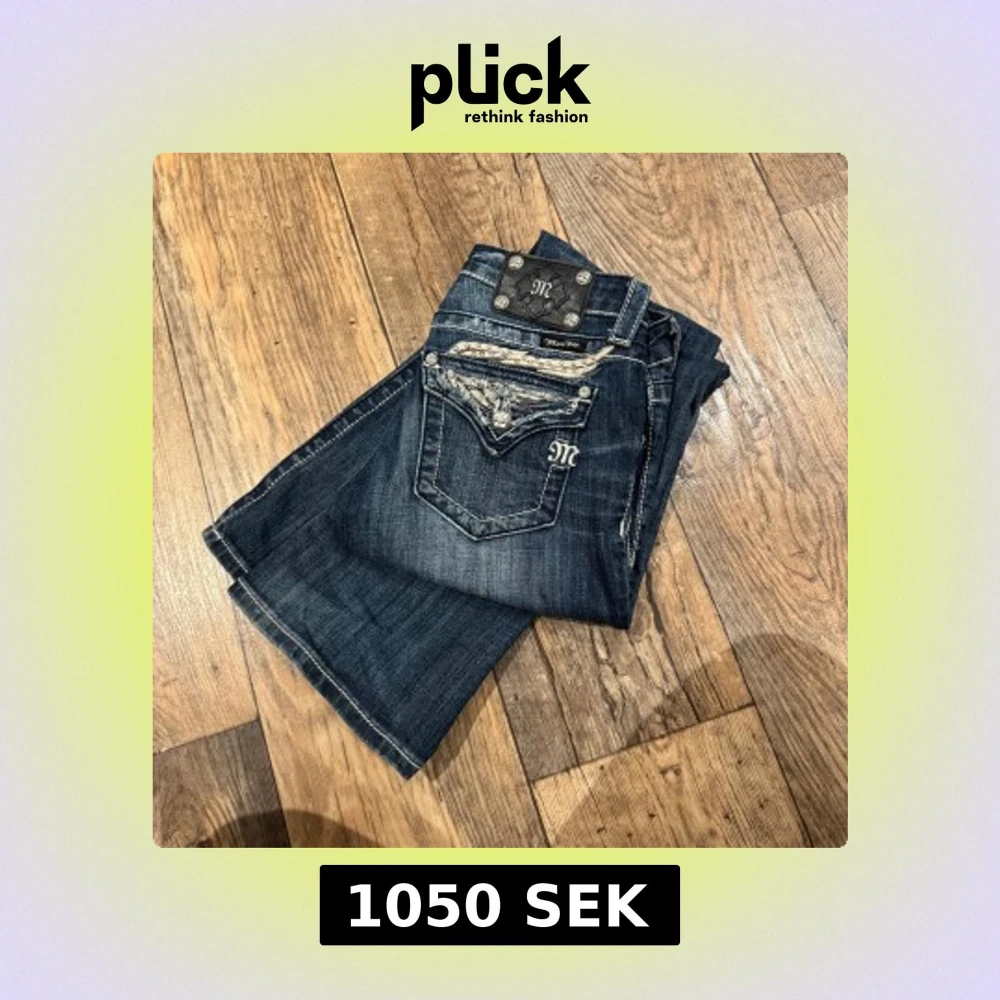 Snygga mörkblå jeans från Miss Me med dekorativa bakfickor och broderade detaljer. Jeansen har en klassisk femficksdesign och en stilren look med en touch av bling. Perfekta för dig som vill ha något unikt i garderoben.