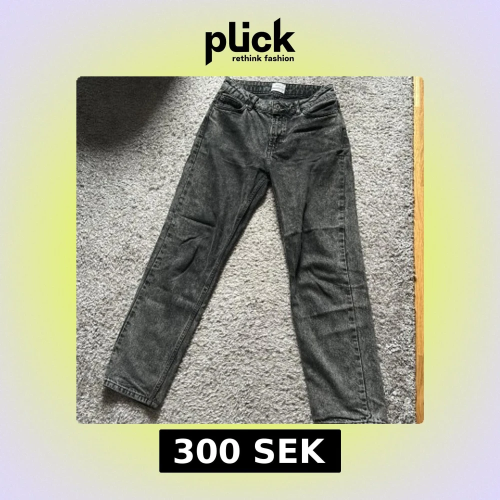 Säljer ett par svarta jeans från Grunt med snygg tvättad look. Jeansen har raka ben, klassisk femficksmodell och bälteshällor. Materialet är jeans i bomull och de har en cool, lite sliten finish som ger en avslappnad vibe.