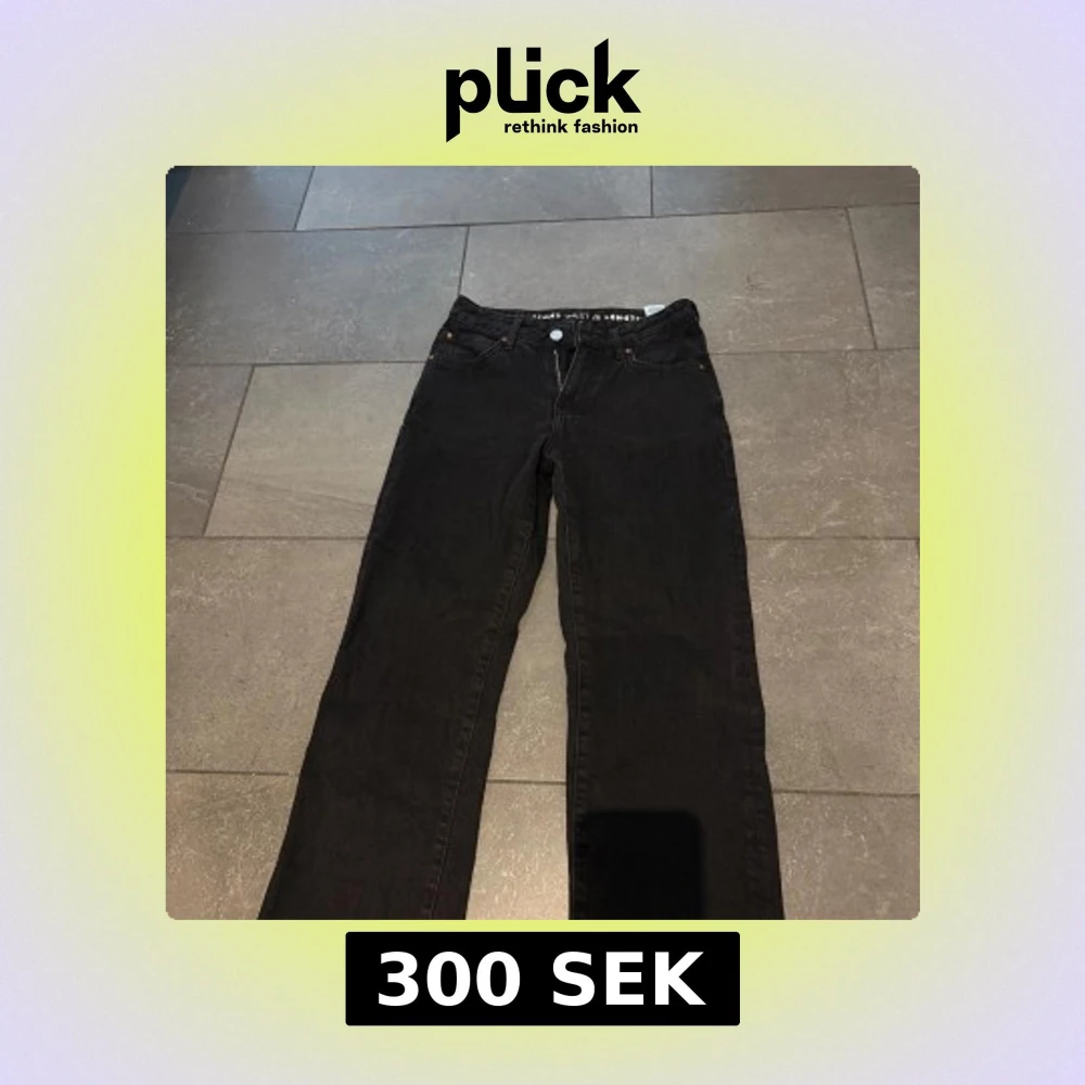 Svarta jeans från Never Denim med low waist och raka ben. Använd enstaka gång. Fickor baktill💕