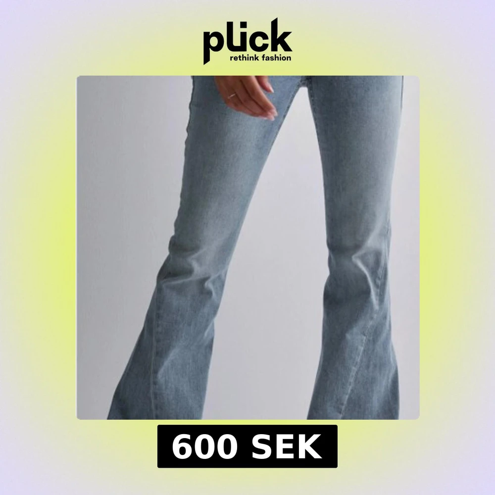 Snygga bootcut jeans i ljusblå tvätt med klassisk femficksdesign. Jeansen har en något utsvängd passform från knäet och är tillverkade i mjukt denimtyg som ger en skön känsla. Perfekta för dig som gillar retrovibbar och vill ha en cool siluett. Använda endast en gång!