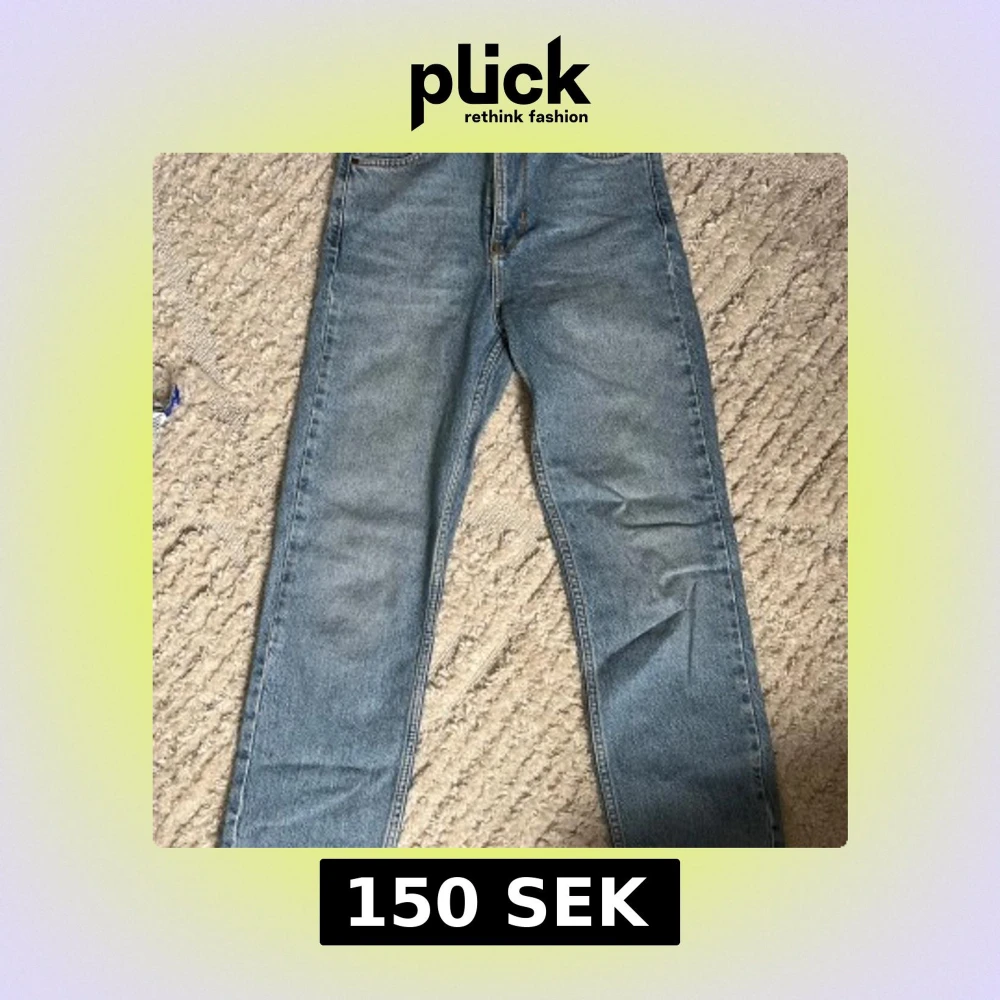 Säljer ett par klassiska ljusblå jeansbyxor med raka ben och normal passform.