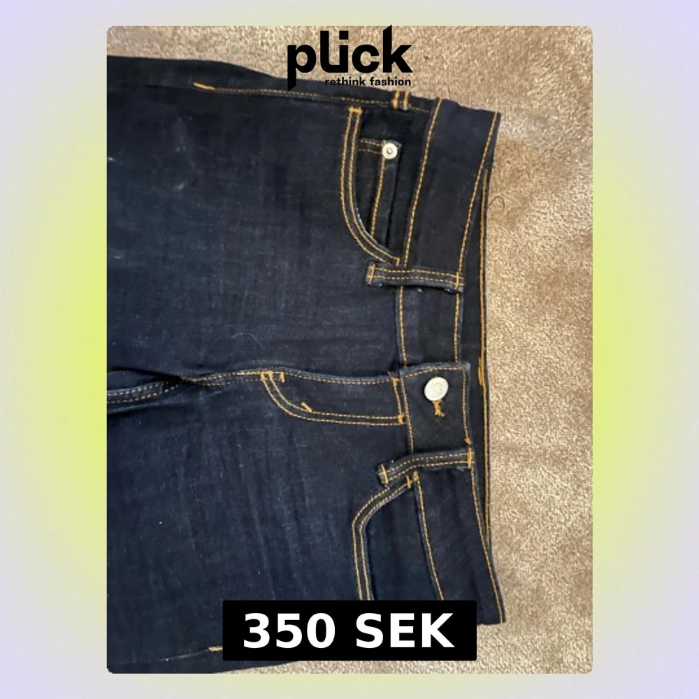 Mörkblå bootcut jeans från Cheap Monday med kontrasterande orange sömmar. Klassisk femficksmodell med knapp och dragkedja framtill. Snyggt Cheap Monday-märke på bakfickan. Perfekt för dig som gillar retrovibbar och markerad siluett.