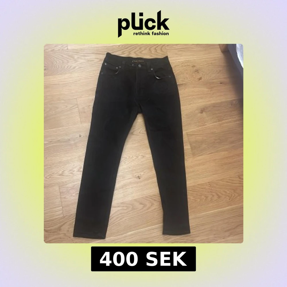 Snygga svarta jeans från Nudie Jeans med klassisk femficksdesign och knappgylf. Perfekta för en stilren look. Tillverkade i ett slitstarkt material som ger en bekväm passform. Ny pris: 1799. Skick 7-10