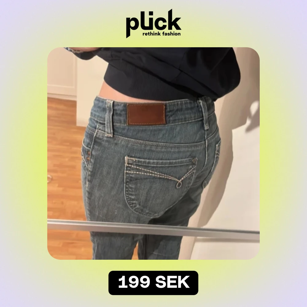 Fina skinny jeans med slits (se bild 2) och super snygga fickor och detaljer Midjemått rakt över: 36,5cm Innerbenslängden: 77cm Defekter: Är slitna vid grenen (se bild 3) men inget man tänker på. Köpta för 350kr, Bara att höra av er vid fler frågor!💗