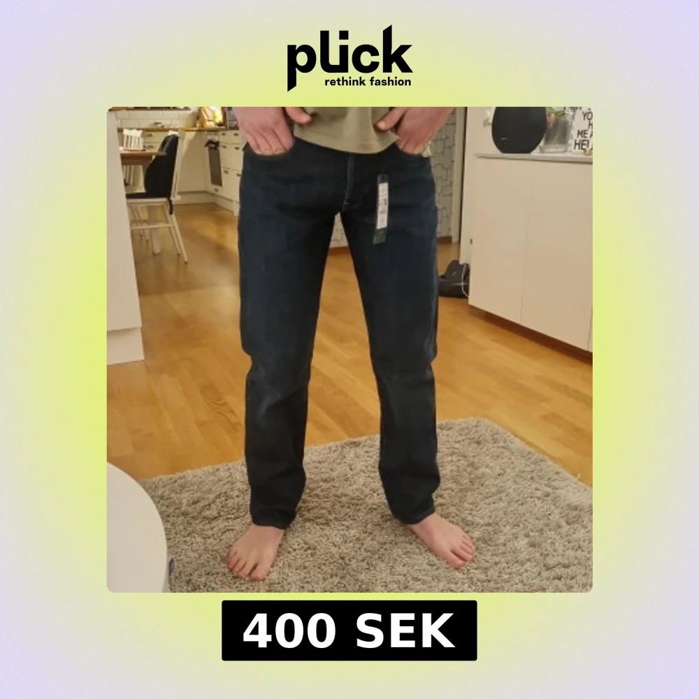 Dessa är oanvända så skicket är mycket bra. Modellen är 3301 slim och det är den mörkblåa färgen. Jag är 172 och ganska smal och dem sitter tight på mig i midjan men längden är perfekt