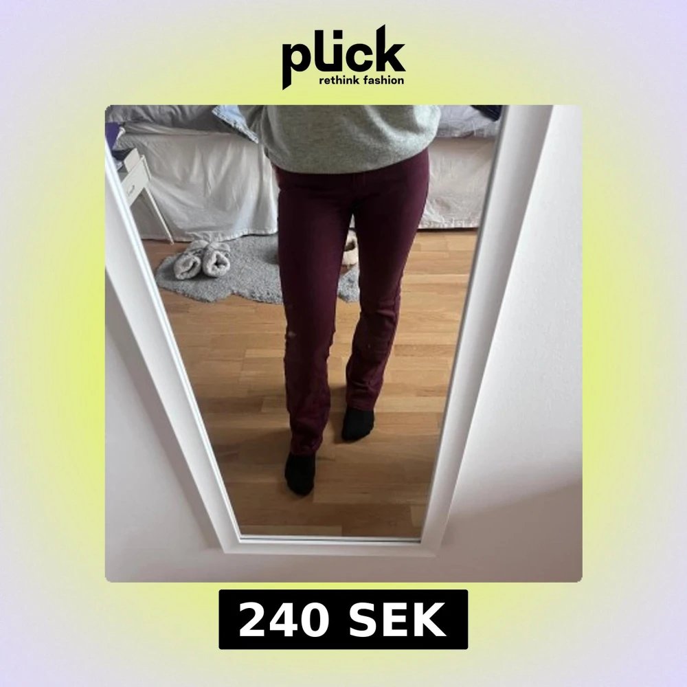 Snygga vinröda jeans från Big Star med bootcut passform och klassisk femficksdesign. De är i mjukt och skönt material som är lite olikt klassiskt jeanstyg. De är ganska högmidjade och i W27/L34, midjemått 30 rakt över. Knappen är på vänster sida vilket är motsatt från att den brukar vara på höger, knappt använda och köpta för 300 kr på Vinted 🤍🤍
