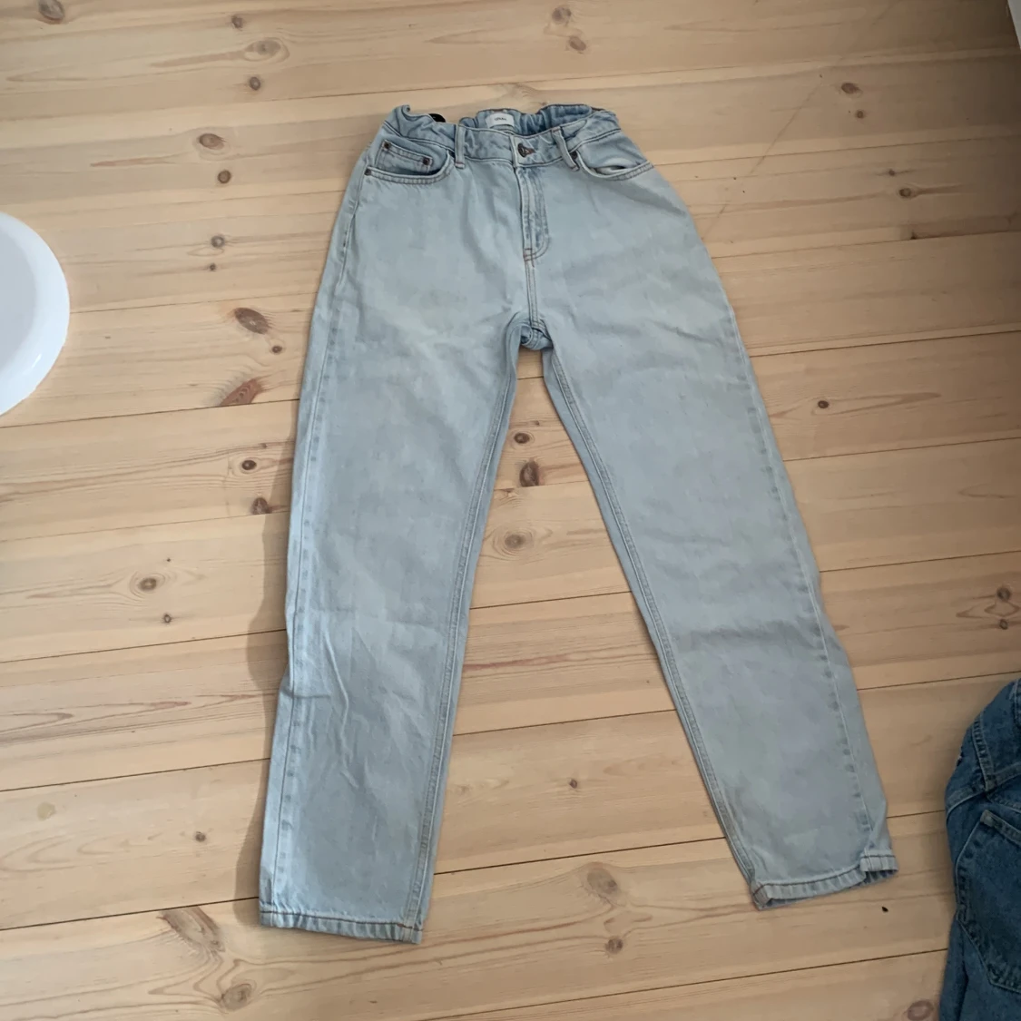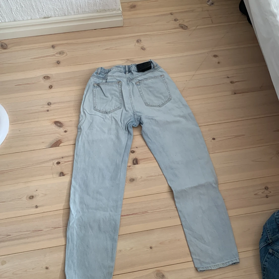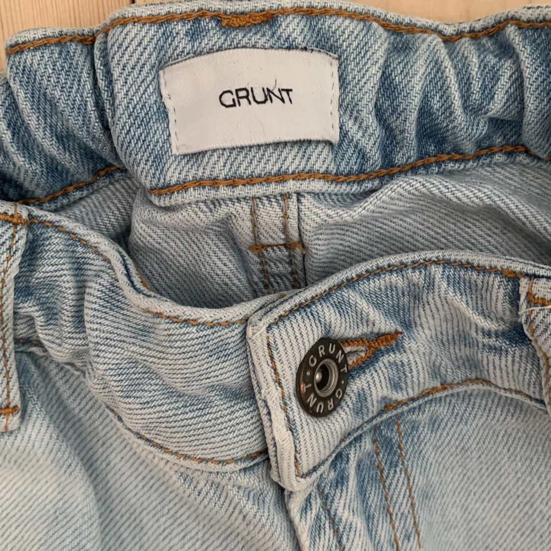 Säljer ett par ljusblå jeans från Grunt i modellen Street Loose Trek Stein. Byxorna har en loose passform, klassisk femficksdesign och stängs med knapp och dragkedja. Perfekta för en avslappnad stil. De är i storlek W27 och varför jag säljer de är för de inte blivit använda och bara legat i min garderob. Pris kan diskuteras😁