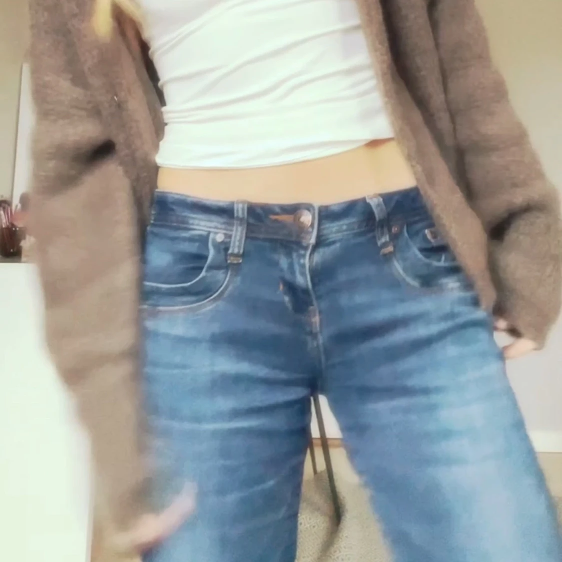 Snygga blå jeans med låg midja från ltb. Passar till allt! 🥰. De har en knapp och dragkedja framtill.