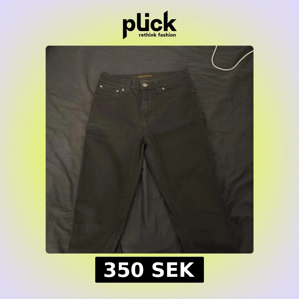Säljer ett par svarta jeans från Nudie Jeans med klassisk femficksdesign och raka ben. Jeansen har normal passform. Perfekta för dig som gillar stilrena och tidlösa byxor.