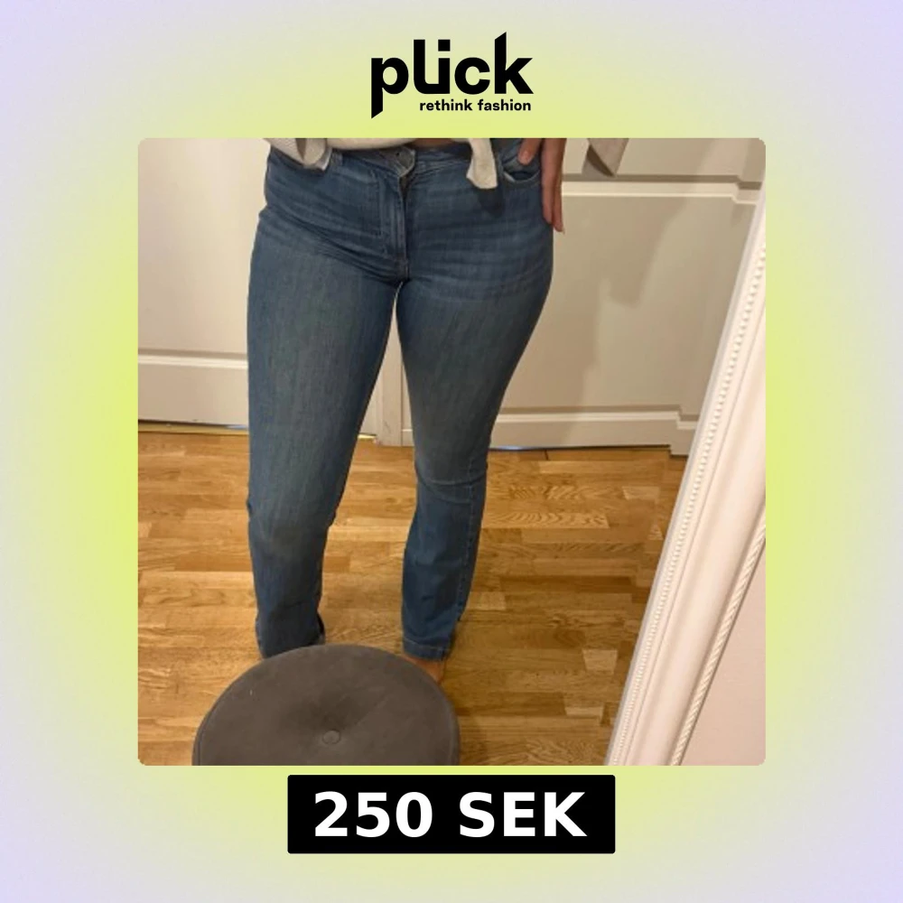 Säljer ett par klassiska blå skinny jeans från JDY. Jeansen har normalhög midja, smal passform och raka ben. Tillverkade i mjukt denimtyg med snygga sömmar och dragkedja framtill. Perfekta till sneakers eller boots.