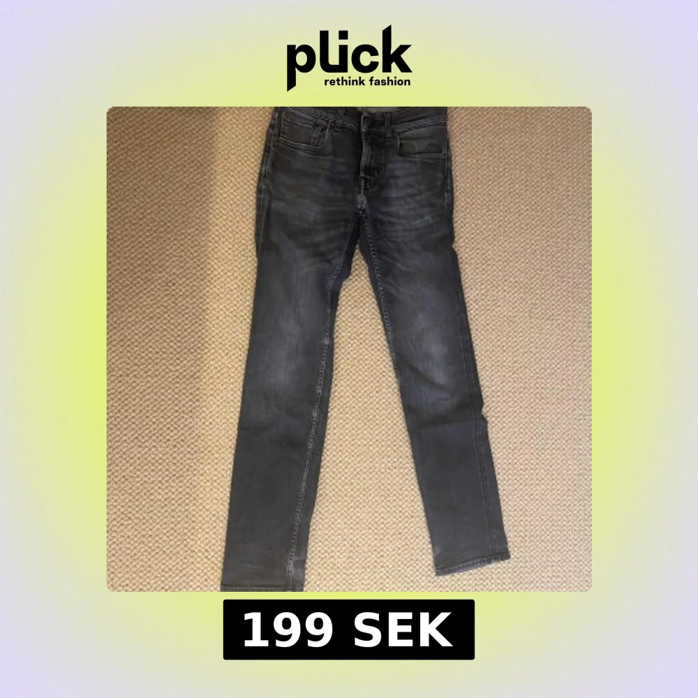 Snygga svarta skinny jeans med lätt tvättad look och slitning vid grenen. Klassisk femficksmodell med dragkedja och knapp framtill. Jeansen har smal passform och raka bakfickor med dekorativ söm. Sönder (se bild 2) däremot lagat.