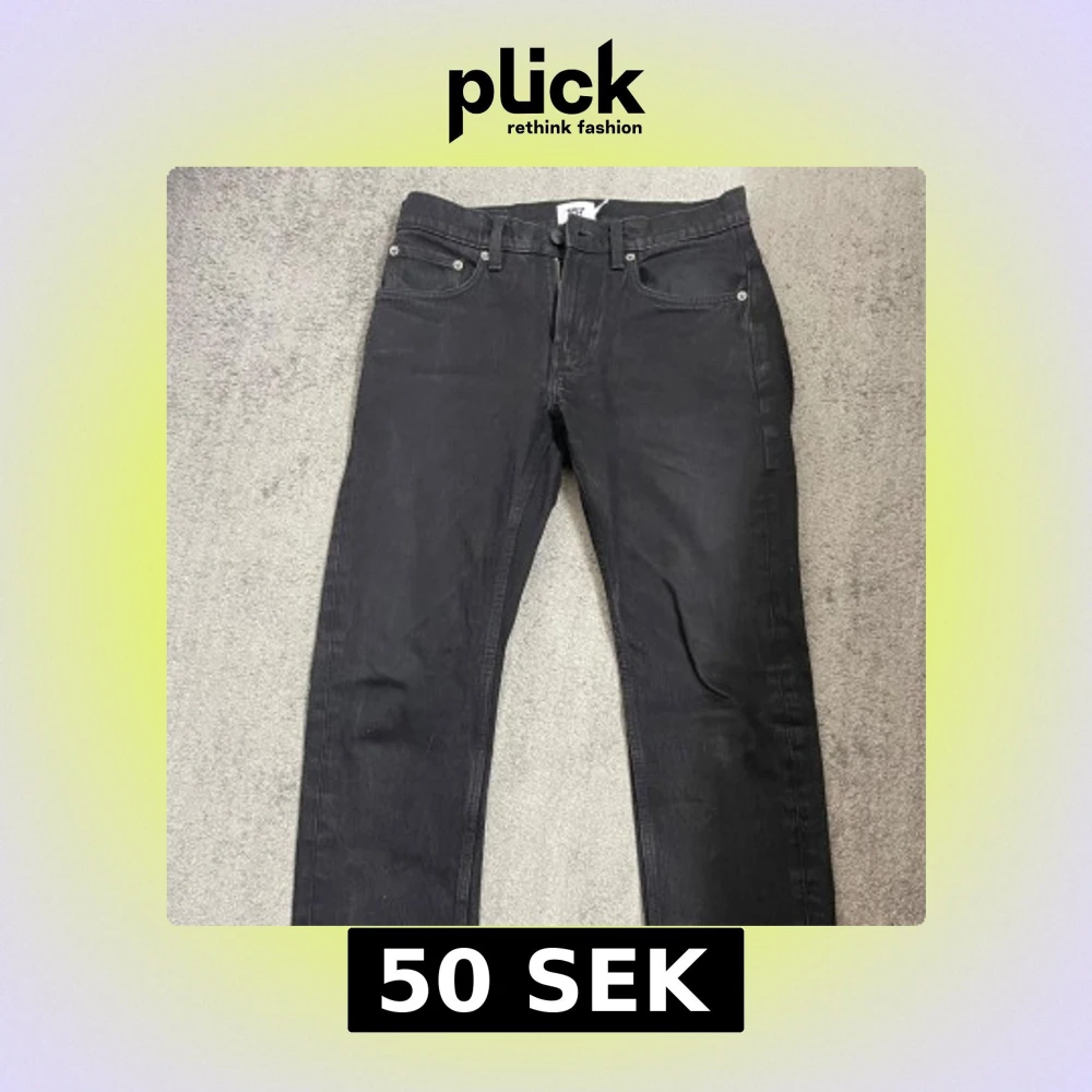 Svarta jeansbyxor från 157 med klassisk design. De har en dragkedja och knapp framtill samt fem fickor. Perfekta för en stilren look. Storlek: W:28 L:32 - (OBS! Byxorna har vikningsveck med viss färgskillnad som syns om de inte viks upp. Påverkar ej kvalitet eller passform. Se sista bild.)