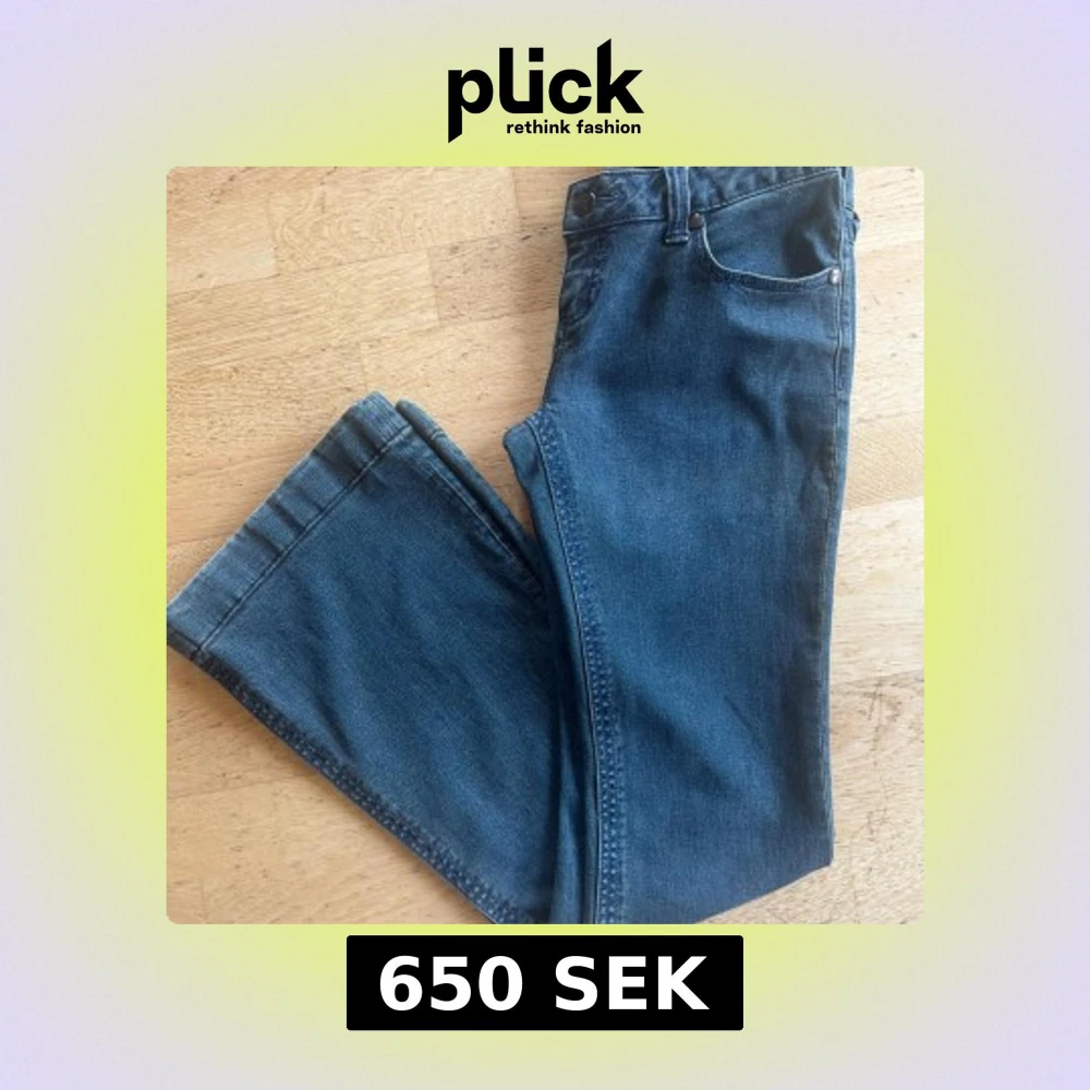 Snygga blå vintage bootcut/flare jeans från Free People med hyfsat mörk tvätt. Innerbenslängden är 82 cm. Waist 28