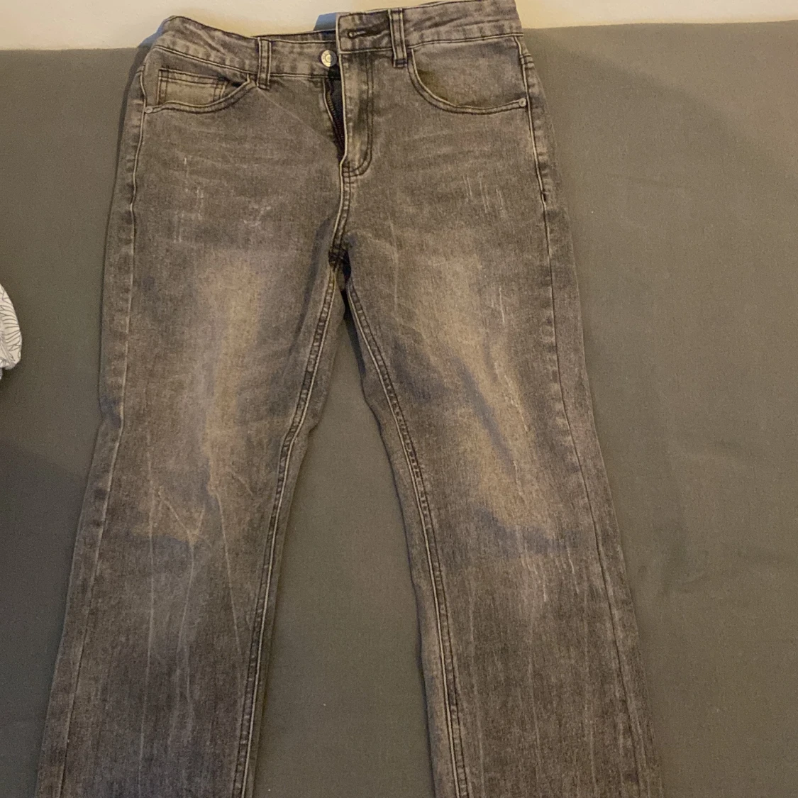 Snygga grå jeans med en klassisk design och dragkedja. Perfekta för en avslappnad stil. Midjan är normal och byxorna har en rak passform. Priset kan sänkas