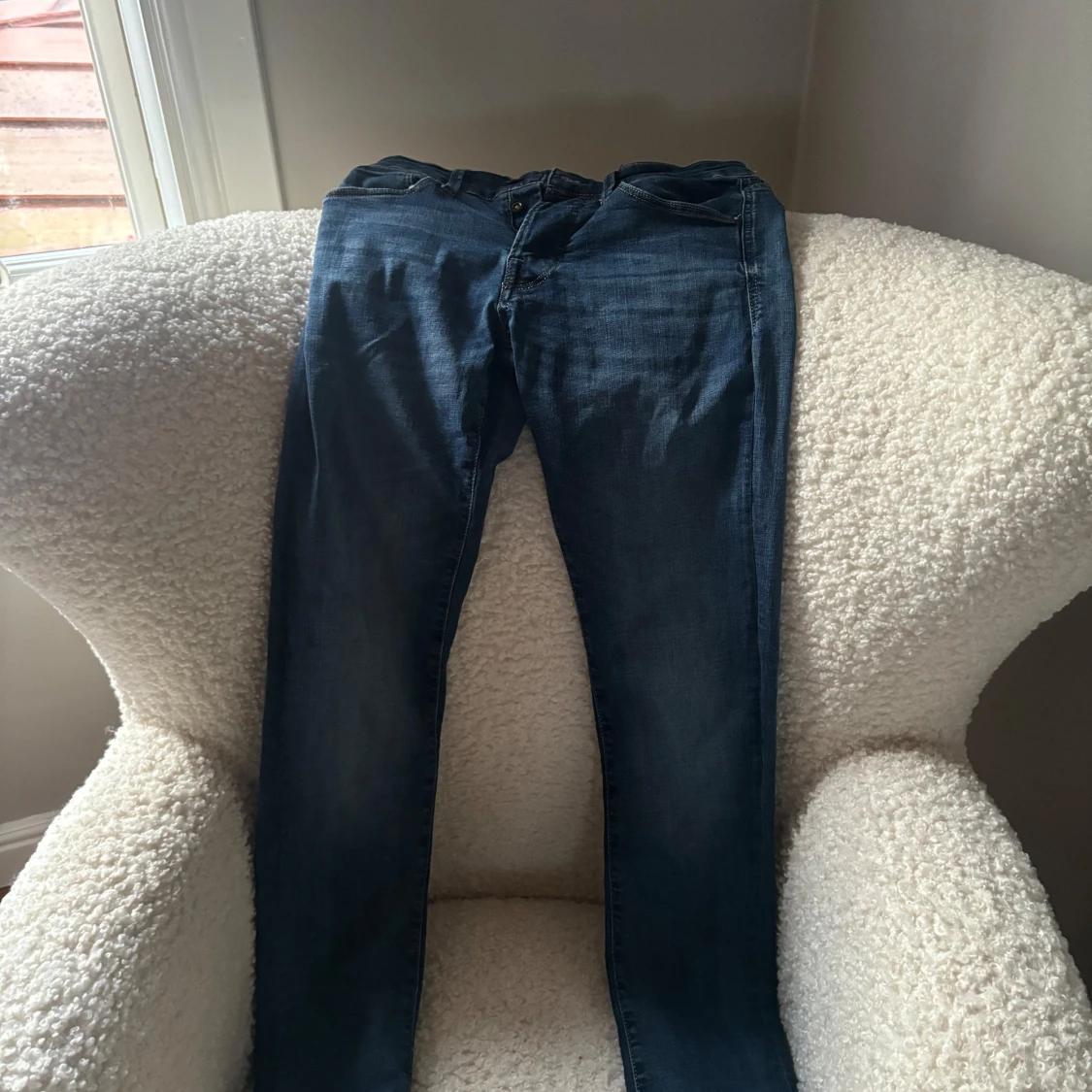 Snygga mörkblå skinny jeans med klassisk femficksdesign och diskreta sömmar. Jeansen har en smal passform och är tillverkade i stretchigt denimtyg för en bekväm känsla. Perfekta till sneakers eller boots.