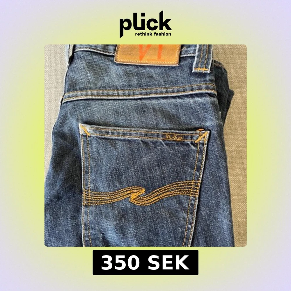 En par fina mörkblå nudie jeans i storlek slim straight/grimtim