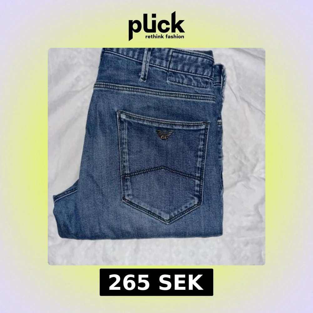 Snygga blå jeans från Emporio Armani med klassisk femficksdesign och ikonisk logga på bakfickan. Jeansen har normal passform och är tillverkade i mjukt denim-material med knappstängning framtill. Perfekta för dig som gillar stilrena och exklusiva jeans.