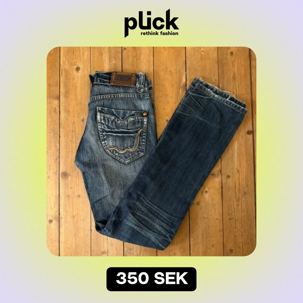 Riktigt snygga jeans me många snygga detaljer Midjemått rakt över 39 cm Innerbenslängd 83cm