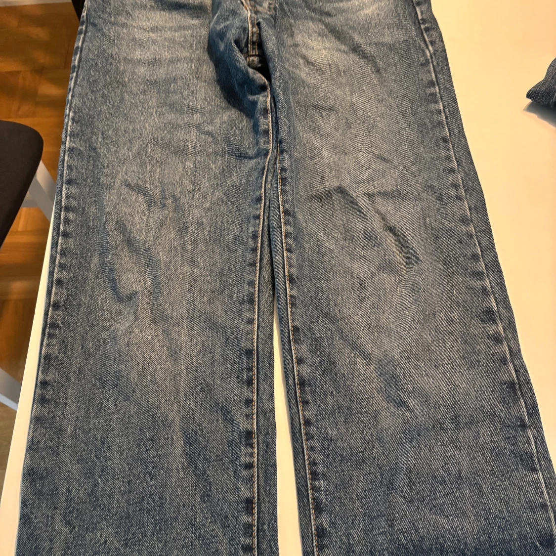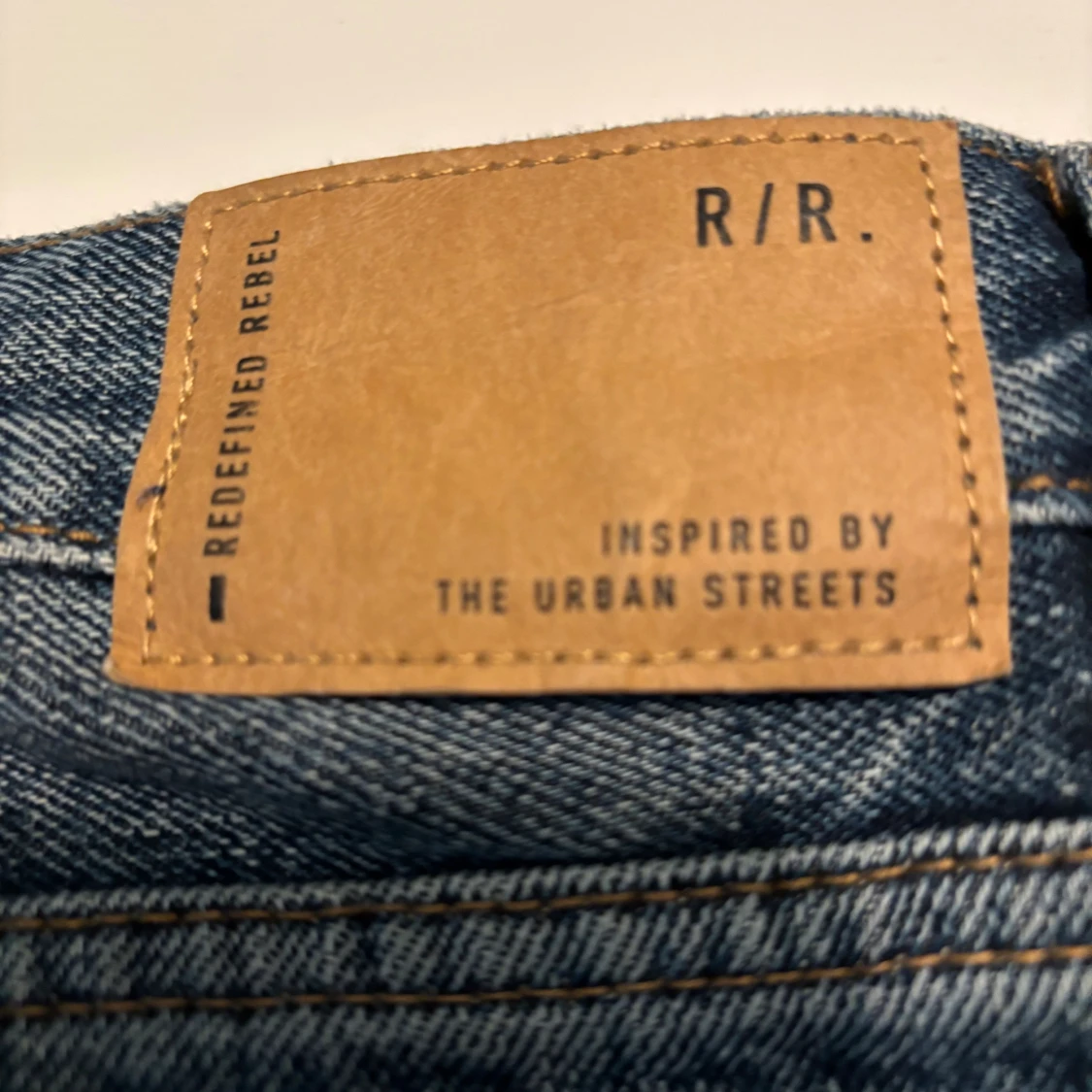 Säljer ett par klassiska blå jeans från Redefined Rebel. Jeansen har rak passform, normal midja och är tillverkade i slitstarkt denim. Snygga kontrastsömmar och två bakfickor. Perfekta för en chill och avslappnad stil.