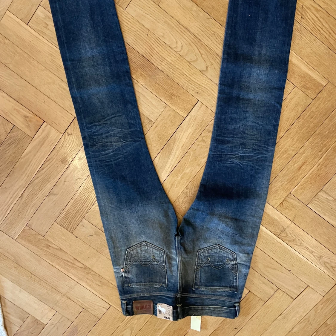 Snygga blå Edwin jeans med en klassisk straight passform. De har en traditionell femficksdesign och är tillverkade i bomull. Perfekta för en avslappnad stil.
