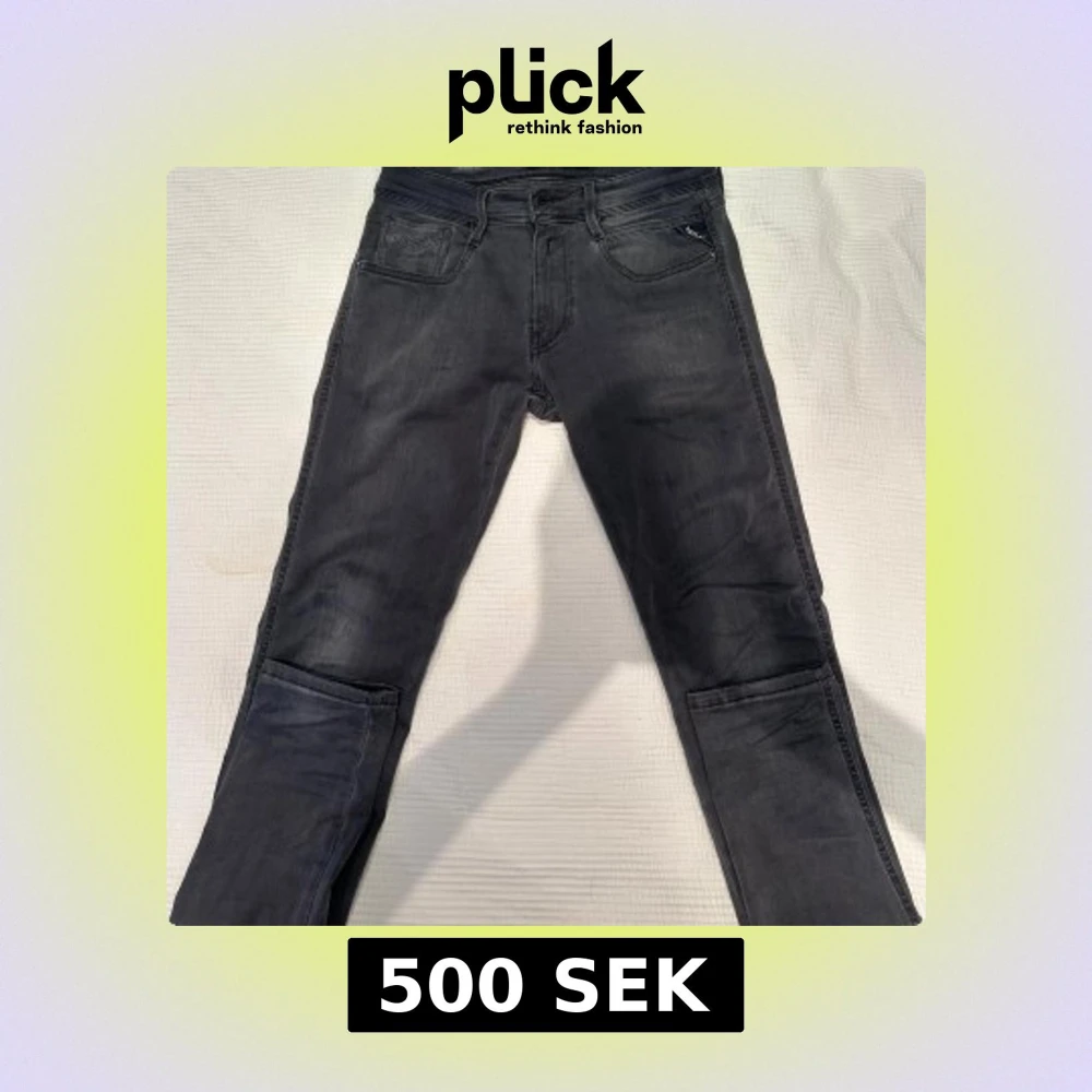 Säljer ett par mörkgrå replay jeans i anbass hyperflex med måtten 29/34! :)