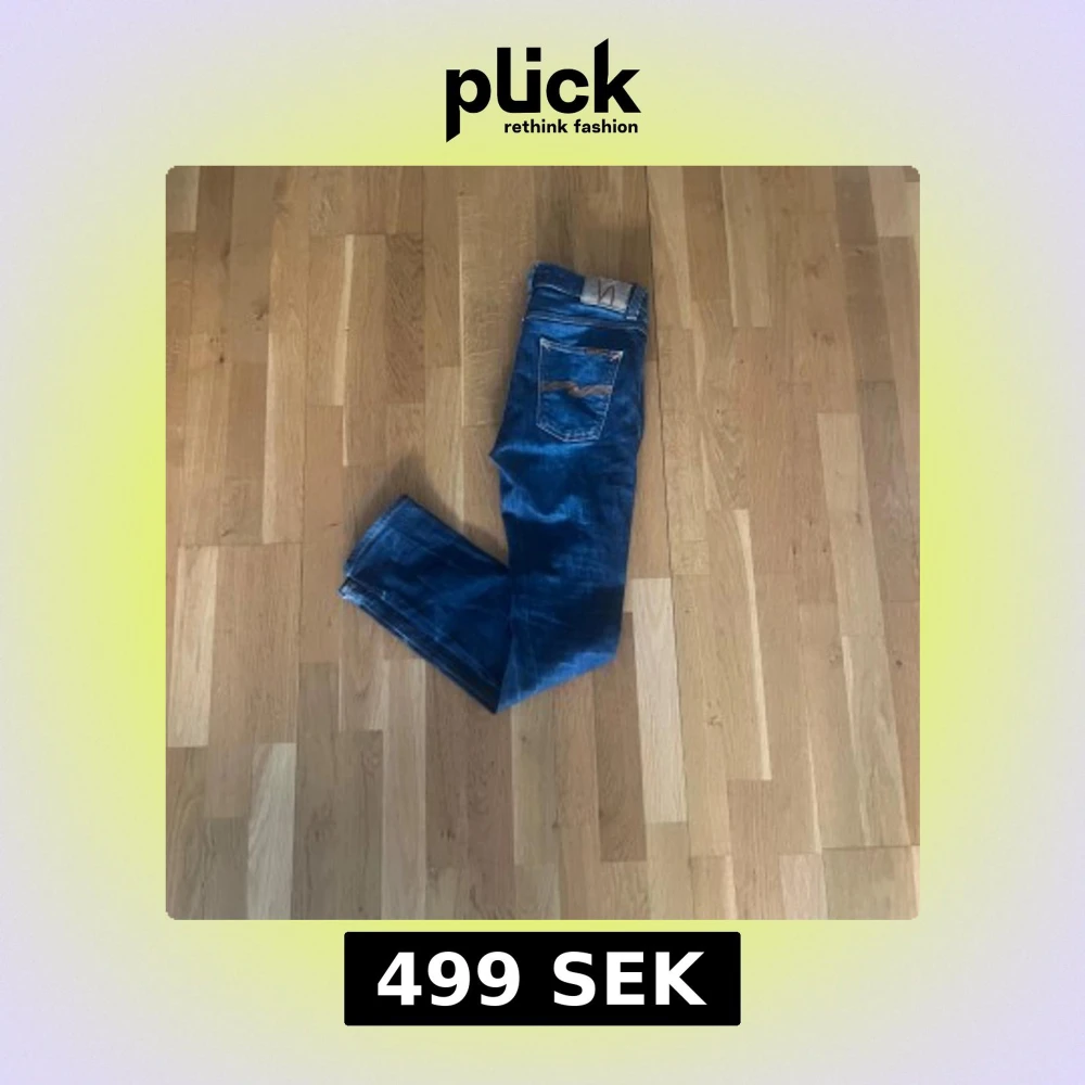 Snygga blå jeans från Nudie Jeans med klassisk femficksdesign och kontrastsömmar på bakfickorna. Jeansen är i modellen Lean Dean storleken är 30w32L