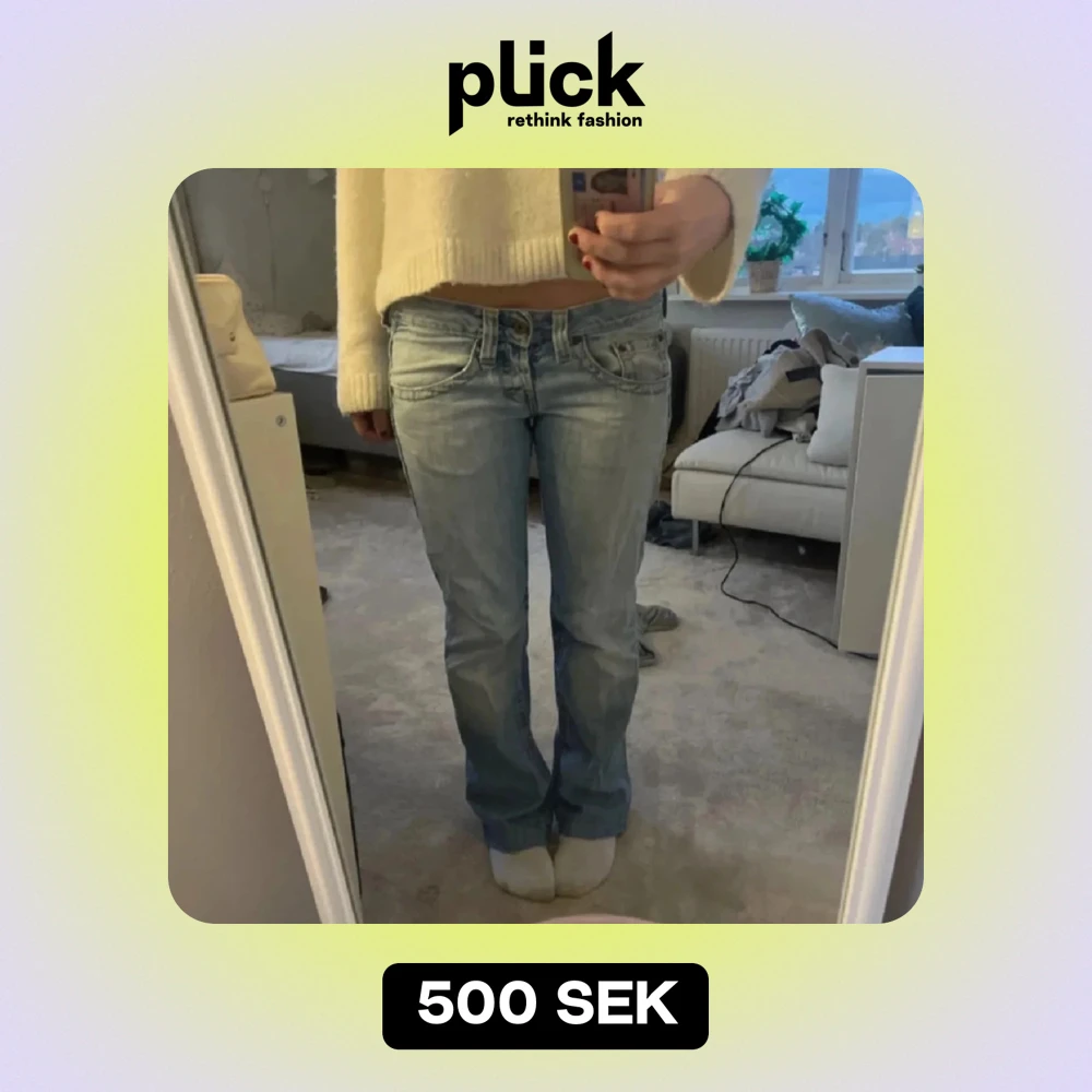 Säljer ett par ljusblå jeans i bra skick. De är lågmidjade och bootcut. Perfekta för vardagsbruk och passar till de flesta outfits. Jeansen har klassiska fem fickor och en snygg tvättad look. Lånade bilder från tjejen jag köpte av och säljer de nu direkt efter jag hämtat de då de var för stora tyvärr. Pris kan diskuteras!