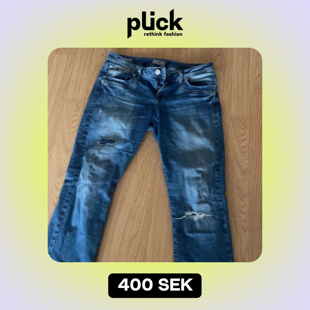 Säljer nu mina blåa Valerie Ltb jeans med hål i. De är använda men fortfarande i bra skick. Skriv för fler bilder eller frågor