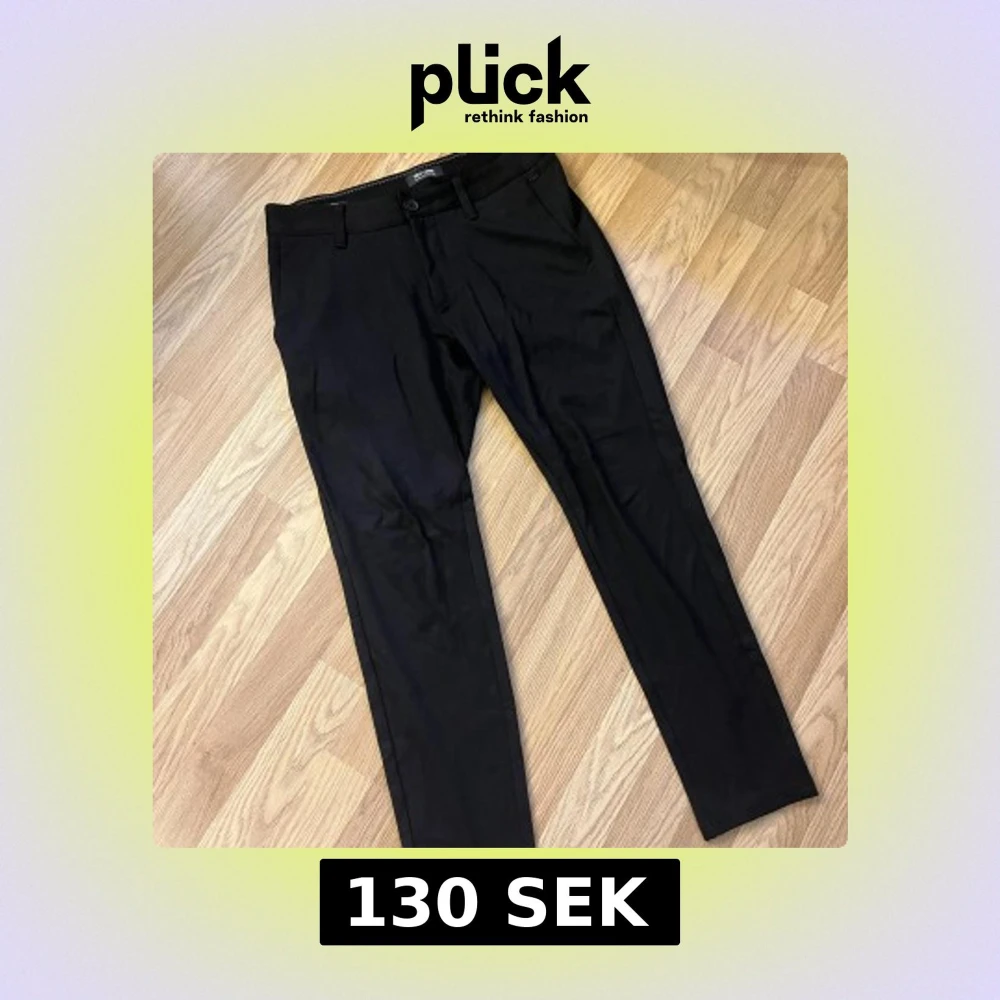 Snygga svarta kostymbyxor från Only & Sons. De har en klassisk design med dragkedja och knapp framtill samt två bakfickor. Perfekta för en stilren look. En knapp saknas på fickan där bak annars är de hela och fina!🌸😊✨ W30 L30