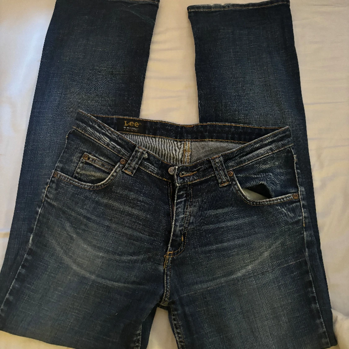 Säljer helt nya Lee jeans som aldrig använts! Modellen är low-waist bootcut, De är Vintage. De är lite för stora för mig, så jag hoppas de hittar en ny ägare💕🫶🏽 skriv priv för mer bilder osv🫶🏽🫶🏽