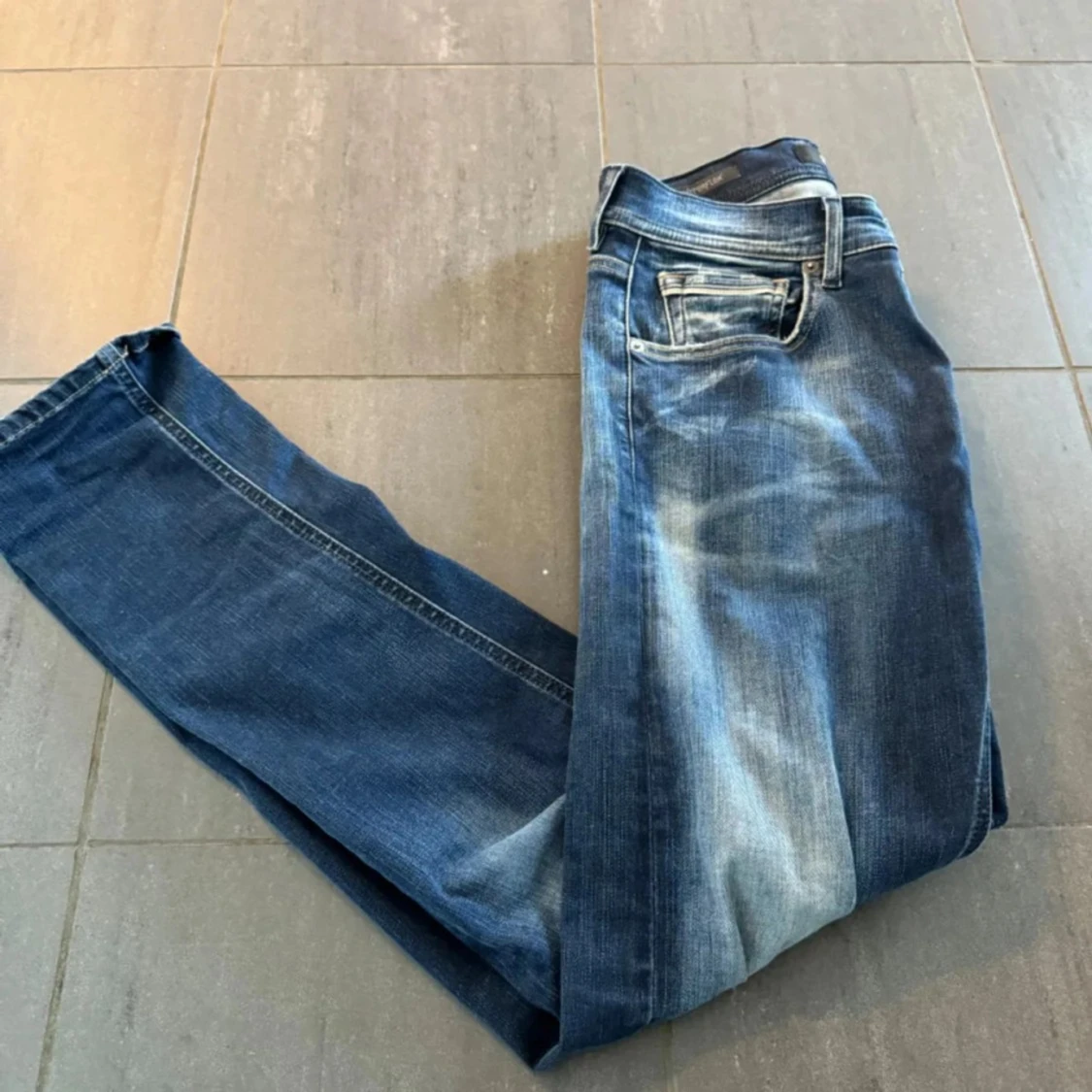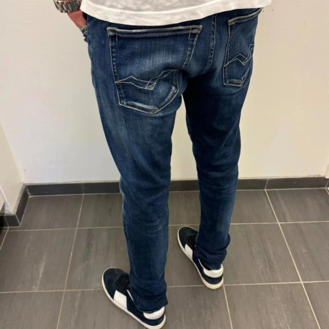 Snygga mörkblå Replay jeans i nyskick .De har en slim passform och passar Perfekt till allt