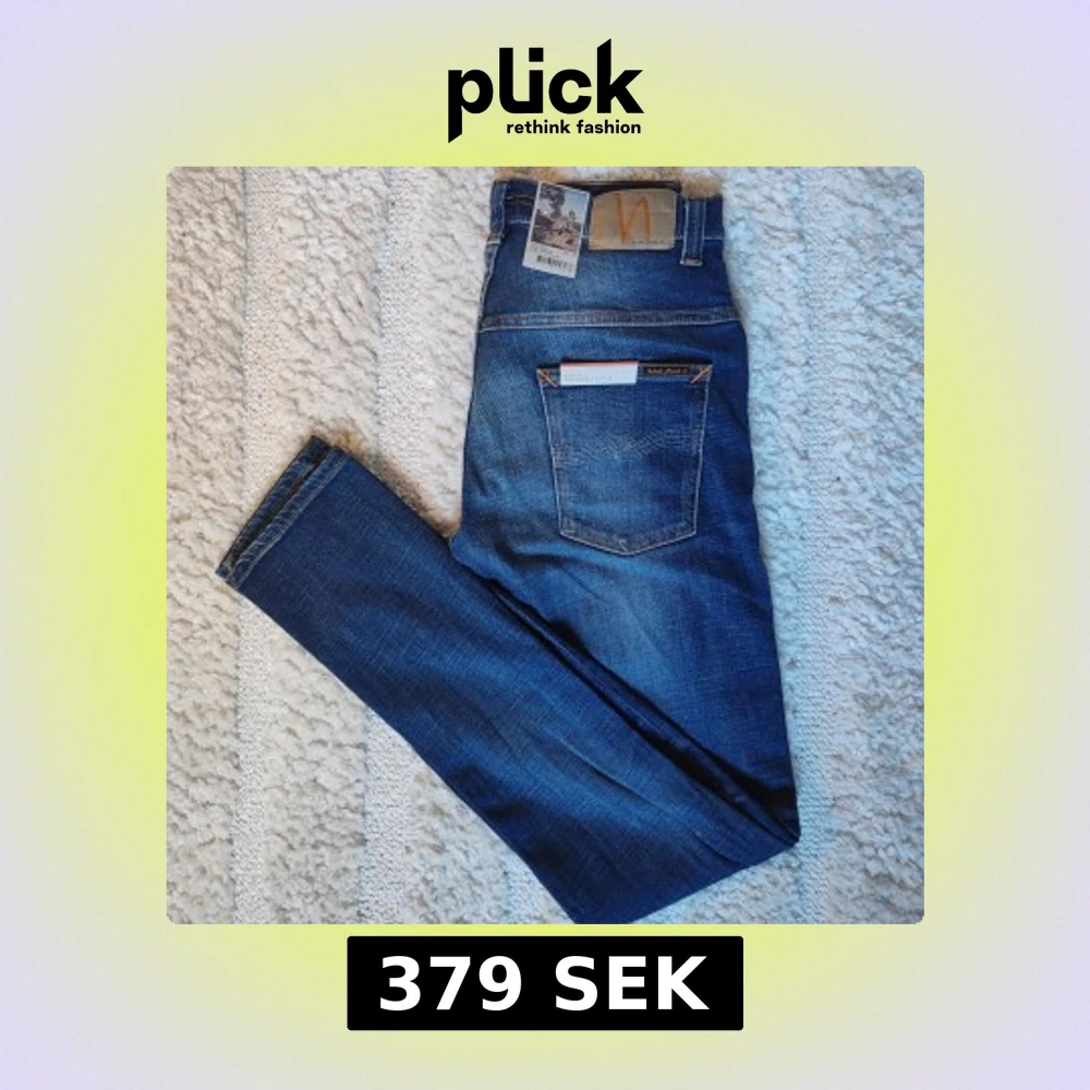 Snygga blå jeans från Nudie Jeans i ekologisk bomull. De har en klassisk femficksdesign med dragkedja och knapp. Riktigt snygga & helt nya!
