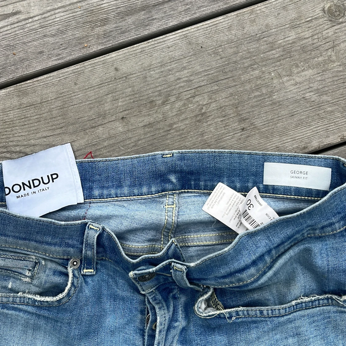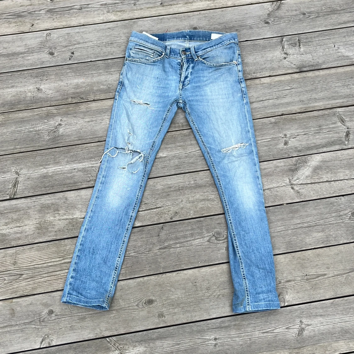 Säljer ett par asfeta dondup George med slitningar 🔥Storleken är 30 men kan passa en storlek mindre, har tecken på användning, men har mycket liv kvar att ge (se bilder) 💪. Lite smuts finns men försvinner i tvätten. Hör av er vid frågor eller funderingar 🙏