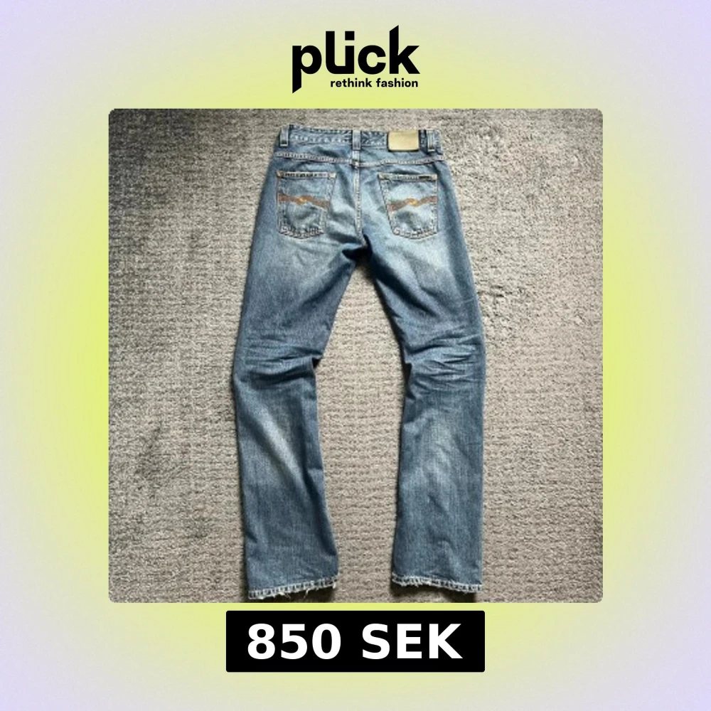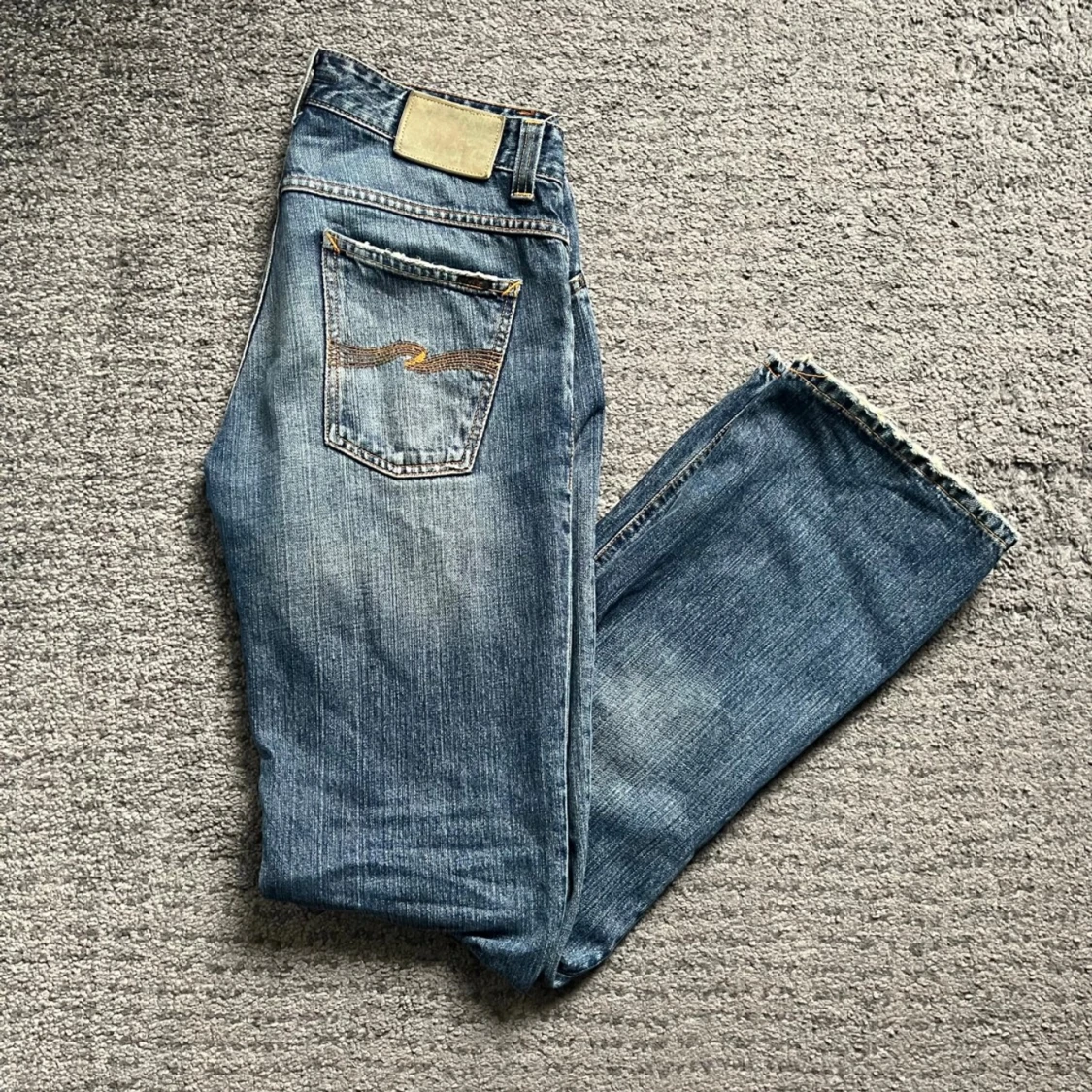 Sjukt snygga bootcut ola jeans från nudie jeans. Riktigt bekväma och har fina slutningar både fram och bak. Storlek 31/34. Skriv för frågor eller fler bilder!