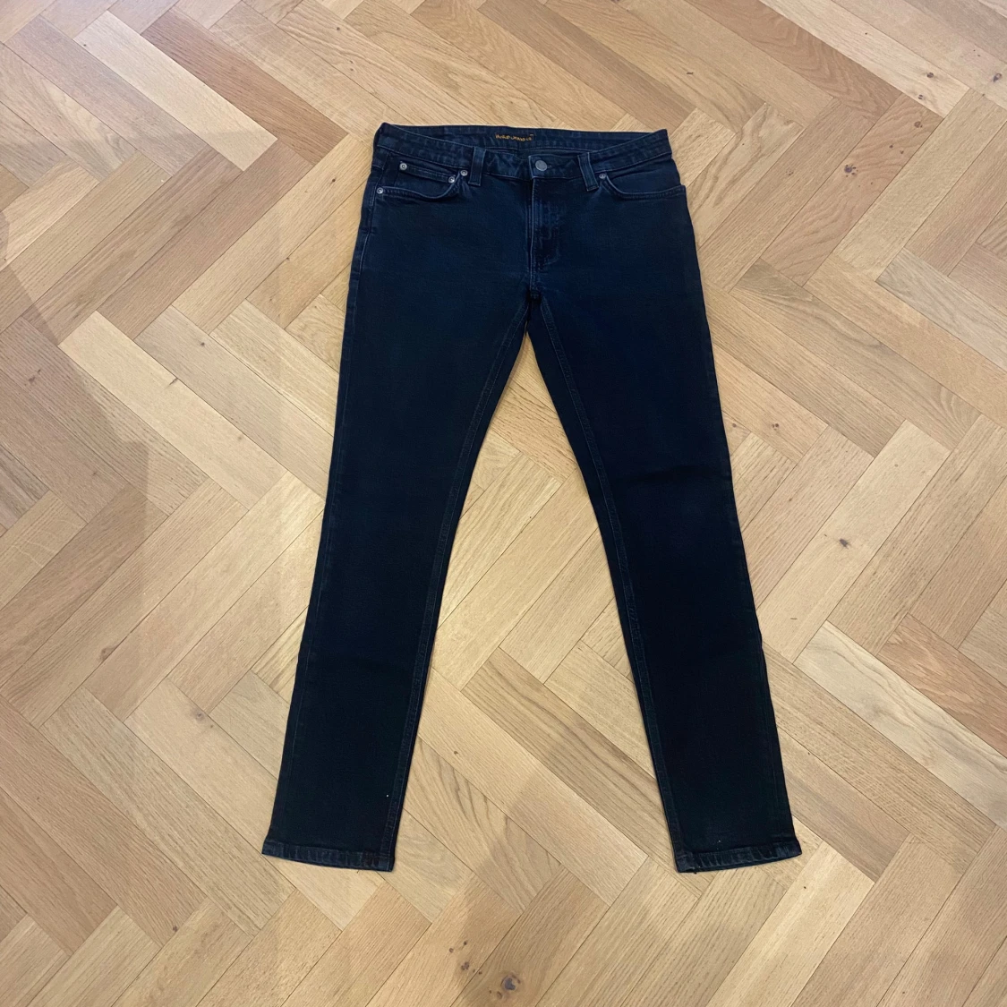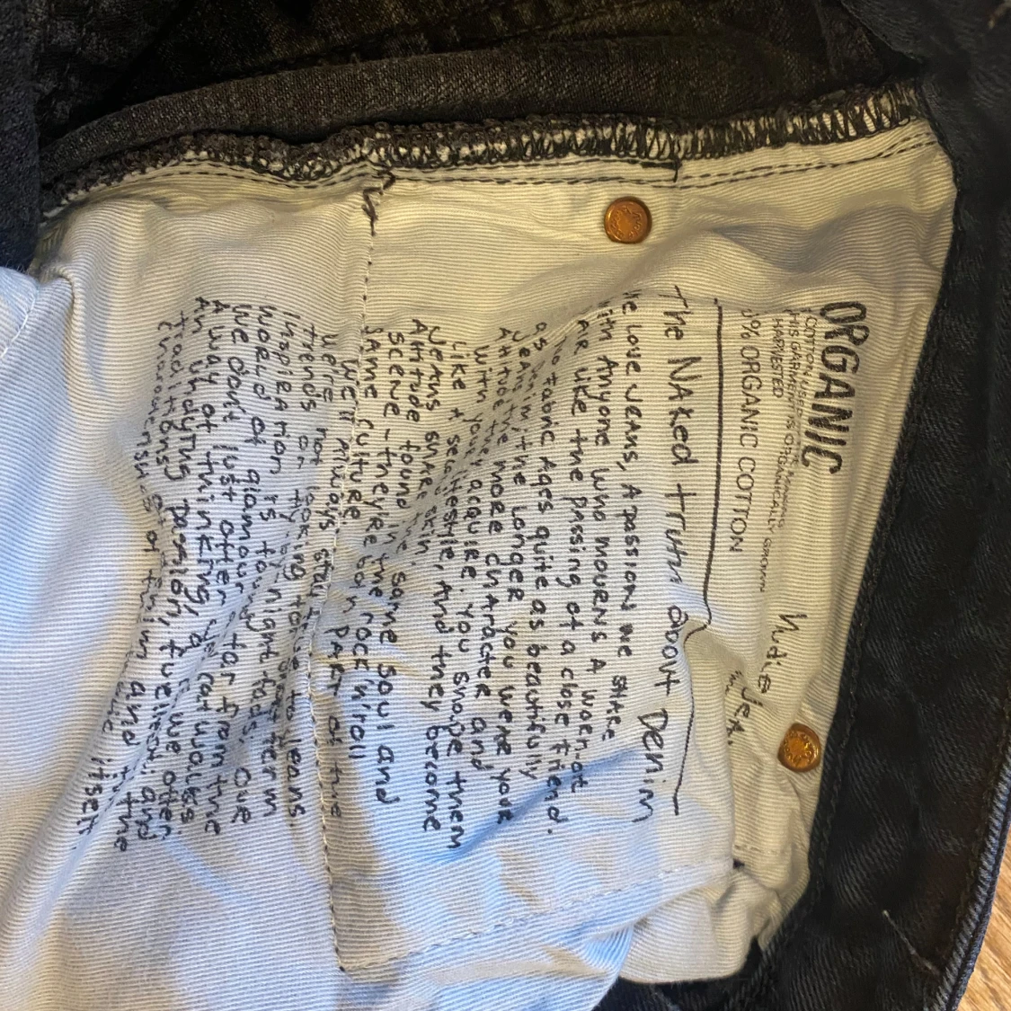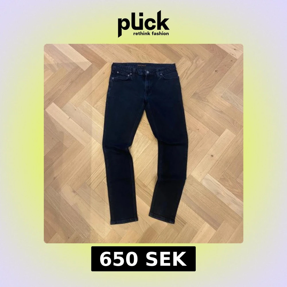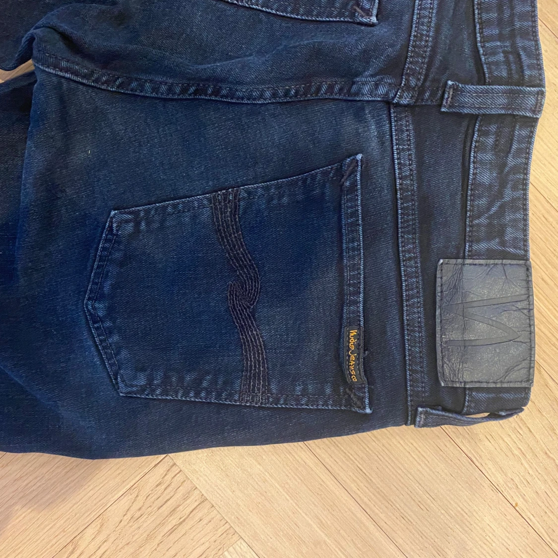 Helt nya nudie jeans i en navy färg som sitter slim. Med en unik text på insidan av vänster fickan. Skriv om ni har några frågor.