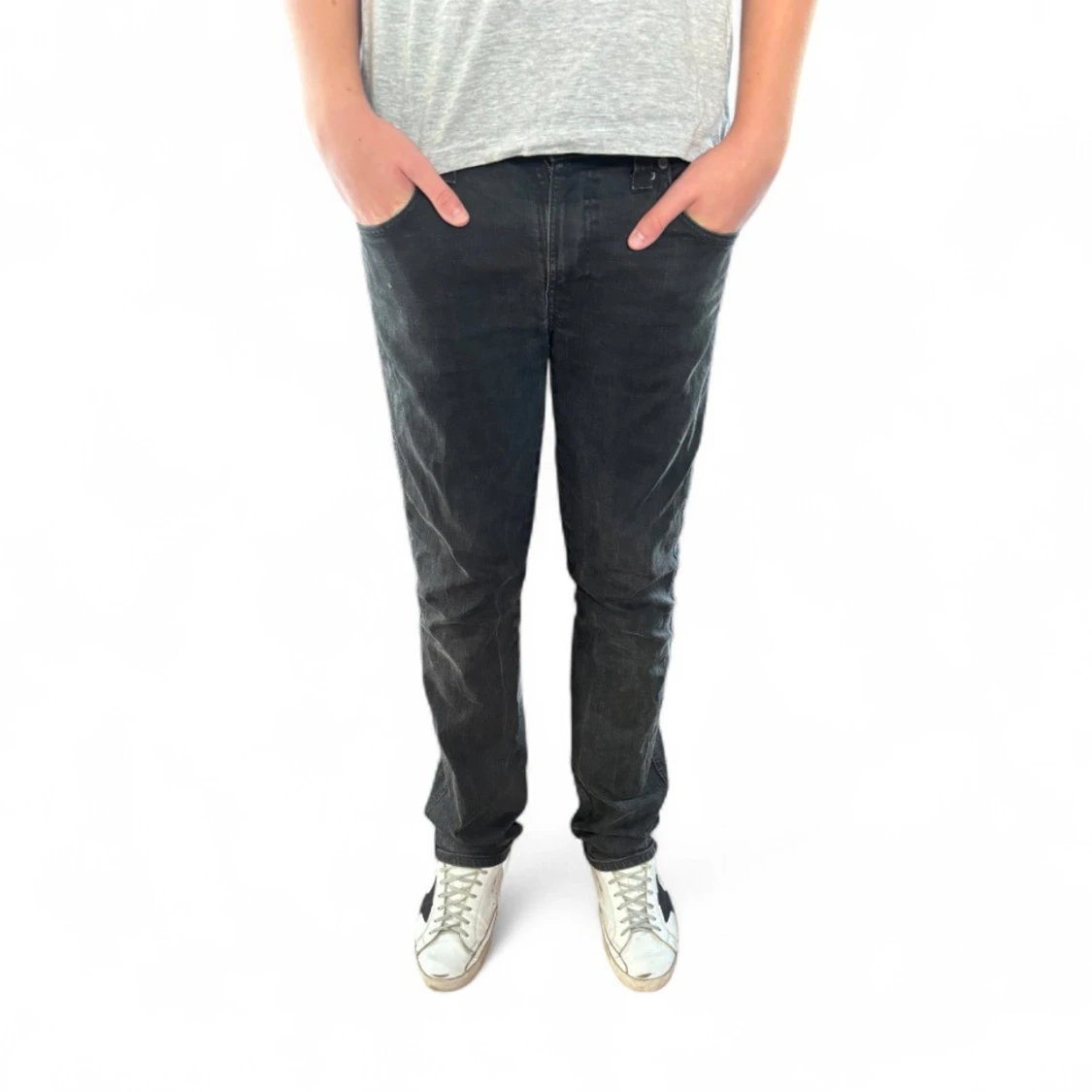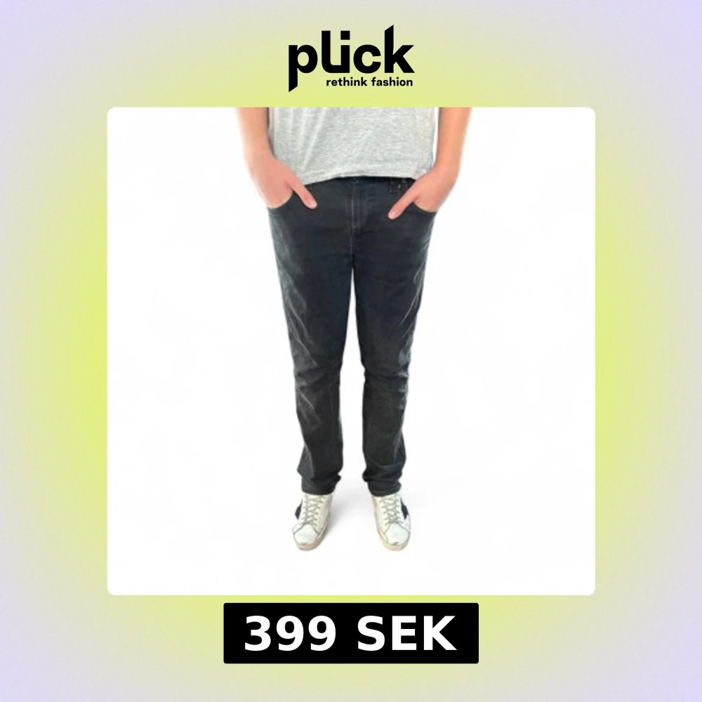 Snygga svarta jeansbyxor med klassisk femficksdesign och raka ben. Jeansen har normal passform och är tillverkade i slitstarkt denimtyg. Perfekta för en avslappnad och stilren look. Modellen heter slim Jim och de är storlek 31:32
