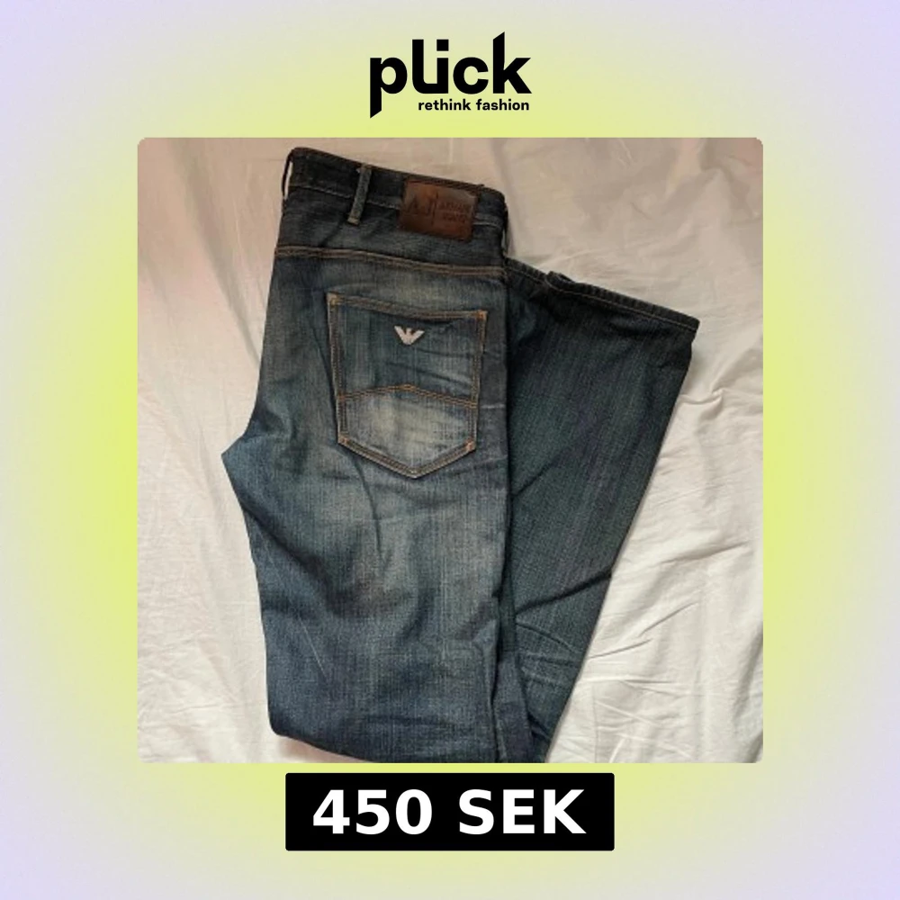 Säljer ett par snygga mörka jeans från Armani Jeans . Jeansen har läderpatch med logga bak och silverfärgad Armani-detalj på fickan. De är raka/slim fit i modellen och har kontrastsömmar för en cool look. Storlek 31/34 men är lite korta för mig som är 193cm 77kg, skulle säga att de passar någon som är 185-190 som bäst.