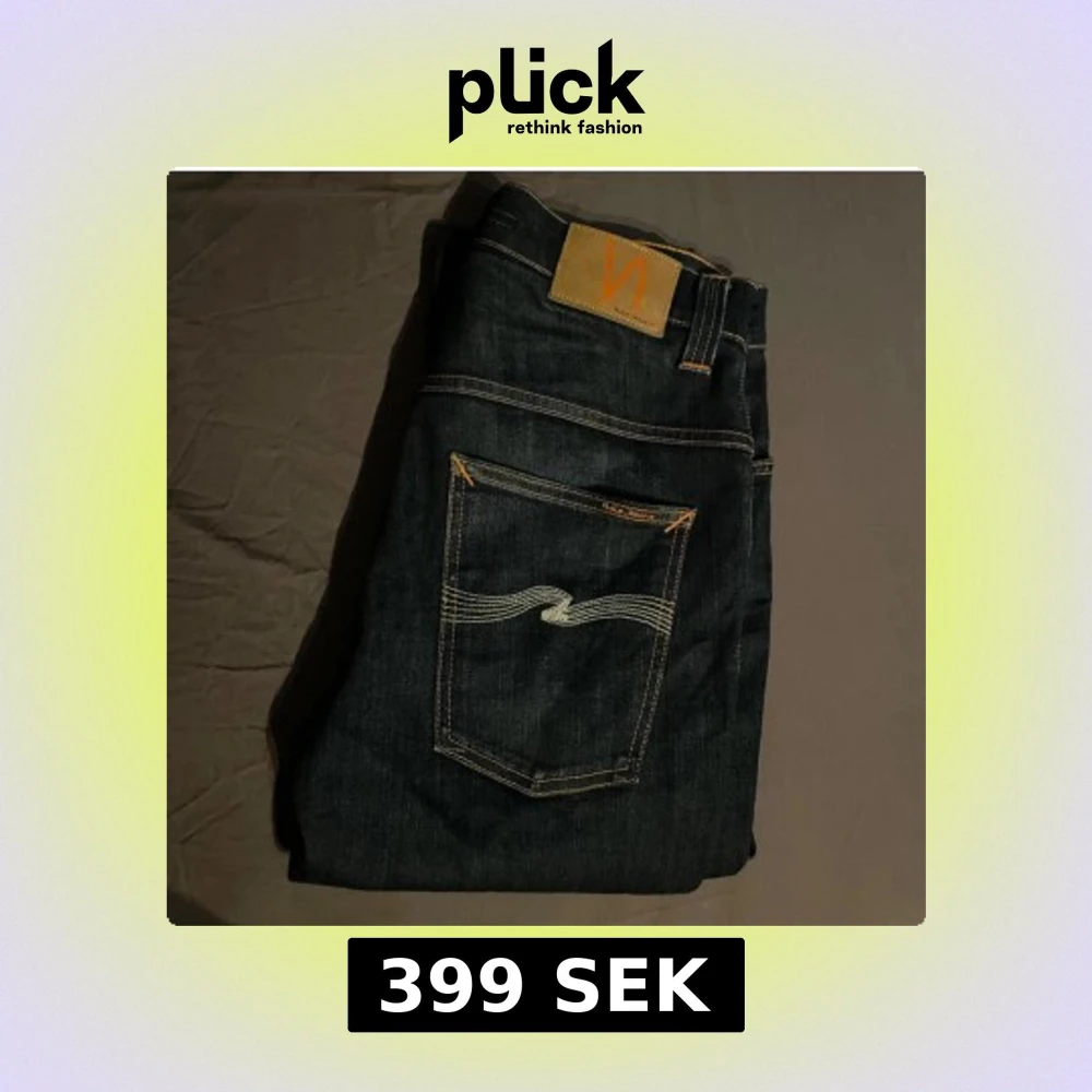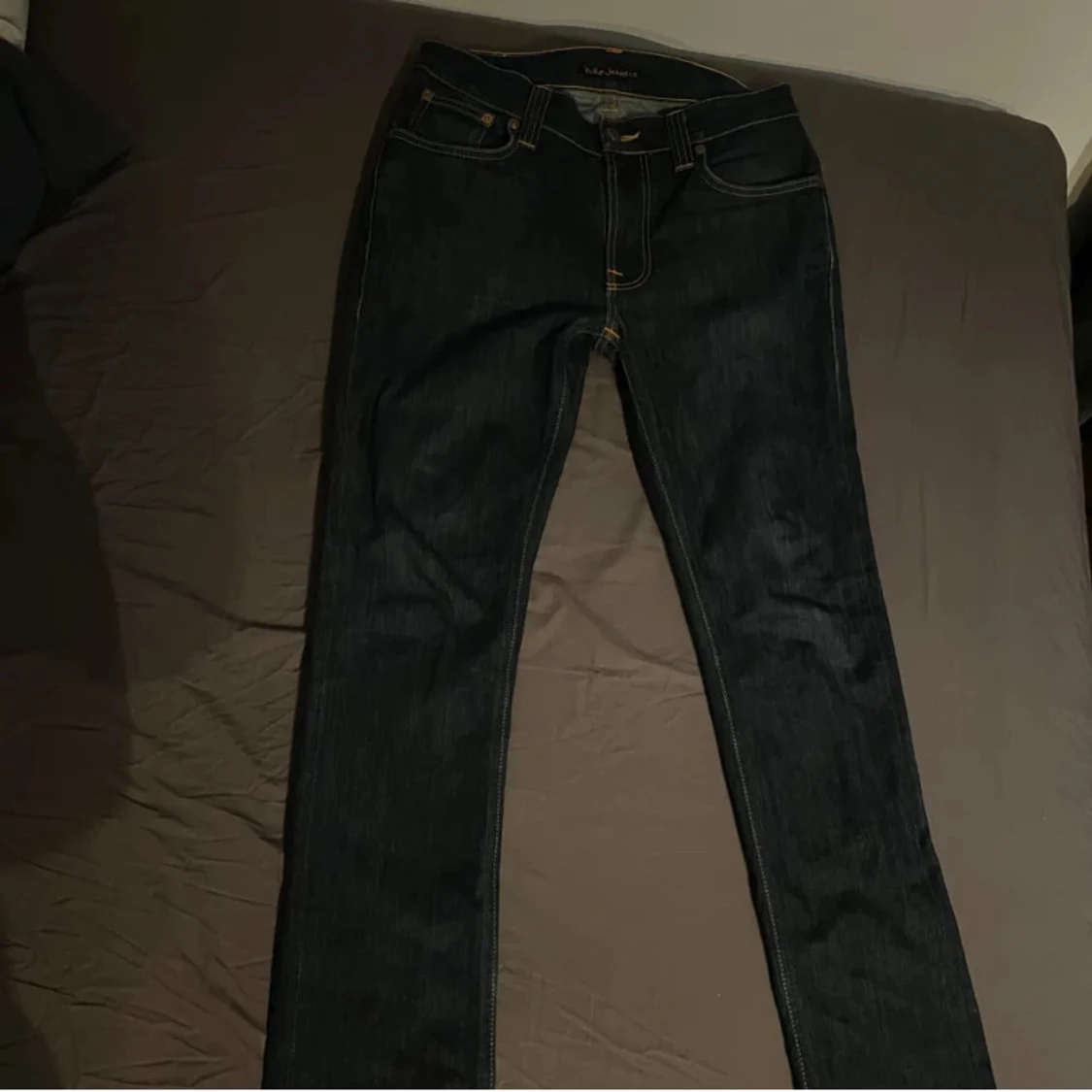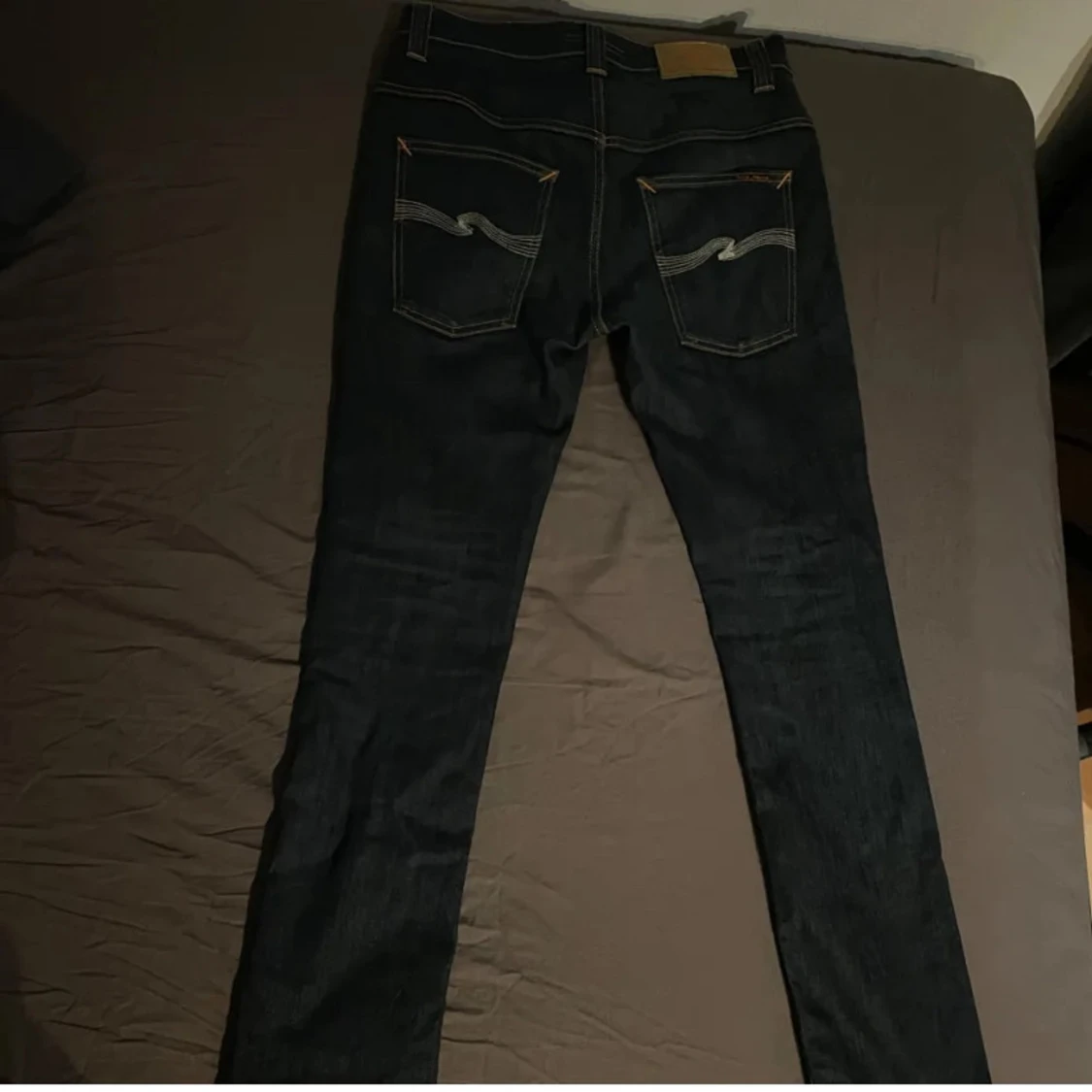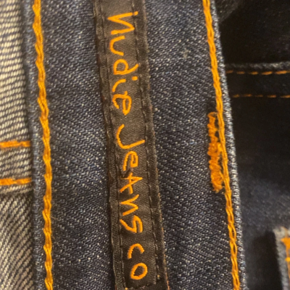 Snygga mörkblå jeans från Nudie Jeans med klassiska orangea sömmar och bakficka med vågig detalj. Modellen har rak passform och normal midja. Perfekta för dig som gillar stilrena och tidlösa jeans.