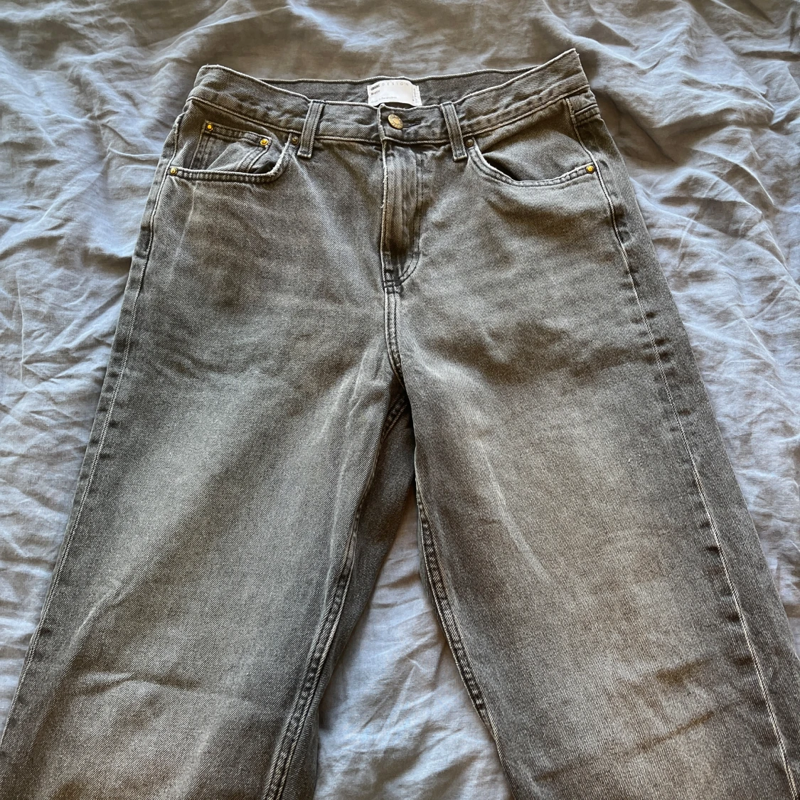 Säljer ett par grå jeans med raka ben, loose fit och klassisk femficksdesign. Jeansen har normal passform och är tillverkade i ett robust denimtyg. Perfekta för dig som gillar en enkel och stilren look. ASOS